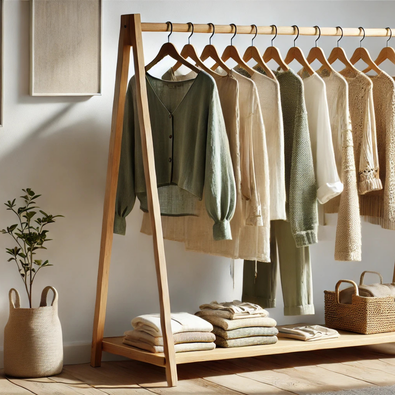 Setze auf hochwertige Naturmaterialien wie Bio-Baumwolle, Leinen oder Wolle. Diese Stoffe sind langlebig, angenehm zu tragen und umweltfreundlich.