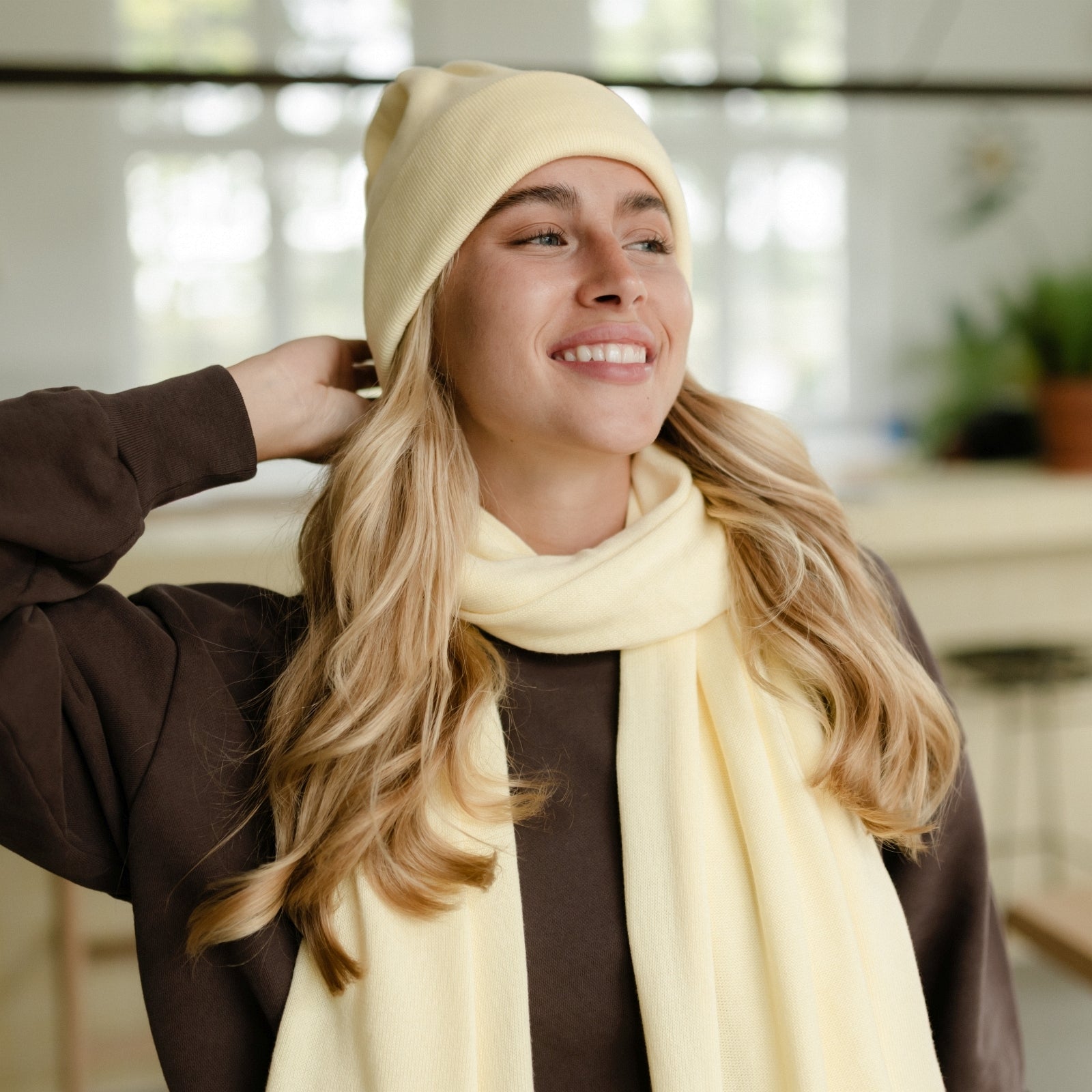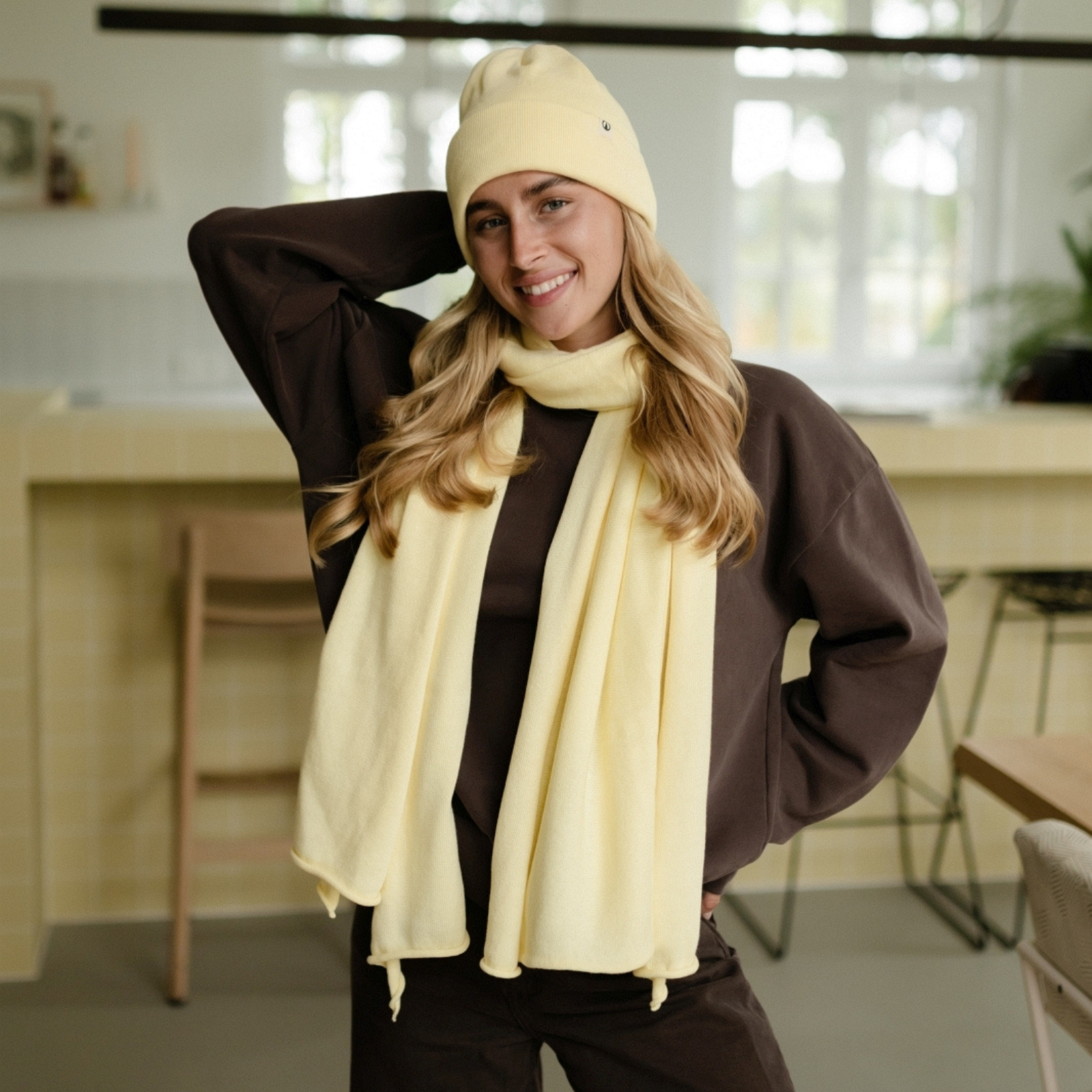 Unsere Nordlicht Strickmütze JORI besteht aus 50% Bio-Baumwolle & 50% recycelter Baumwolle. Der Stoff ist kuschelig weich und wärmt gut. Gleichzeitig wird die Temperatur perfekt ausgeglichen. Einfach zum Wohlfühlen an kalten Tagen.