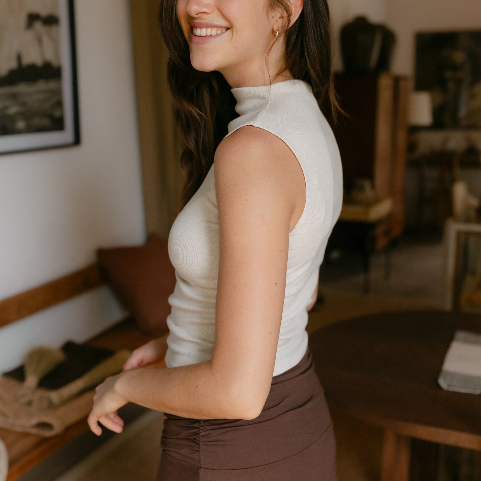 Stoff aus Bio-BaumwolleDas Nordlicht Ripptop Nori ist ein vielseitiges Essential für deine Garderobe. Der enganliegende Schnitt und der kurze Stehkragen verleihen dem Top eine moderne Silhouette, während das weiche Rippmaterial angenehm auf der Haut liegt und für optimale Bewegungsfreiheit sorgt. Ob solo getragen oder als bequeme Layering-Basis – Nori passt sich deinem Stil an und begleitet dich durch den Alltag mit natürlichem Komfort und nachhaltiger Qualität.