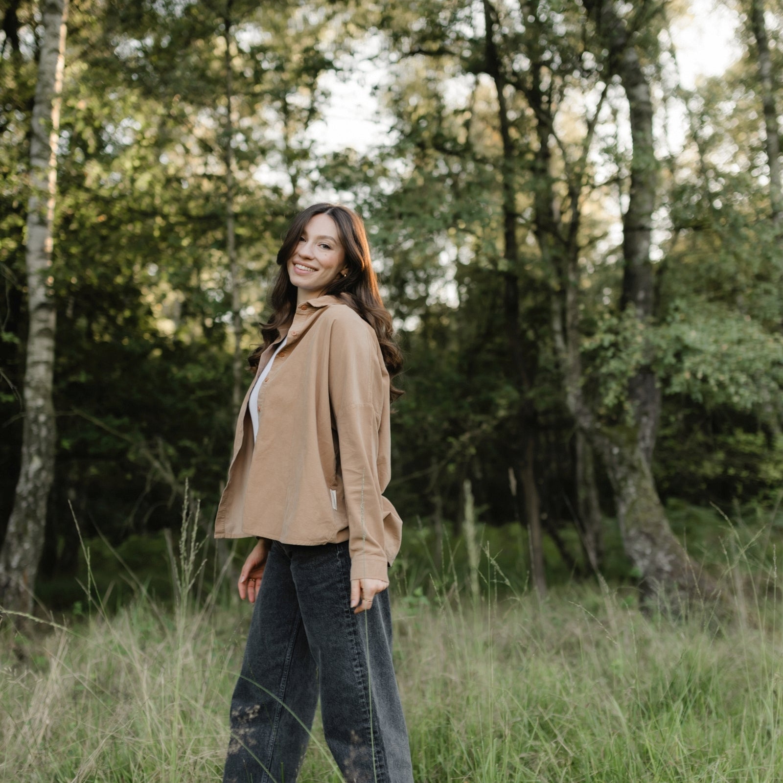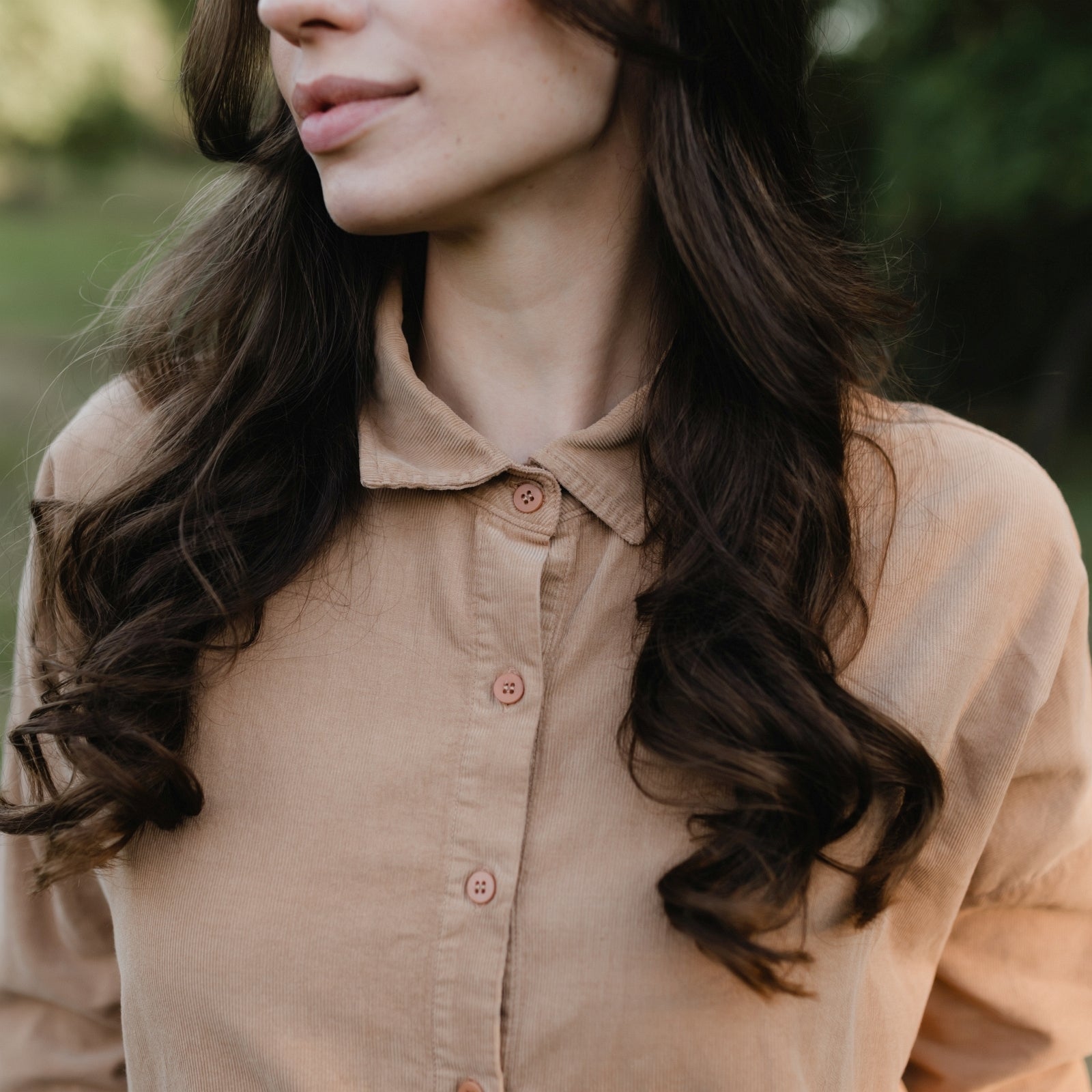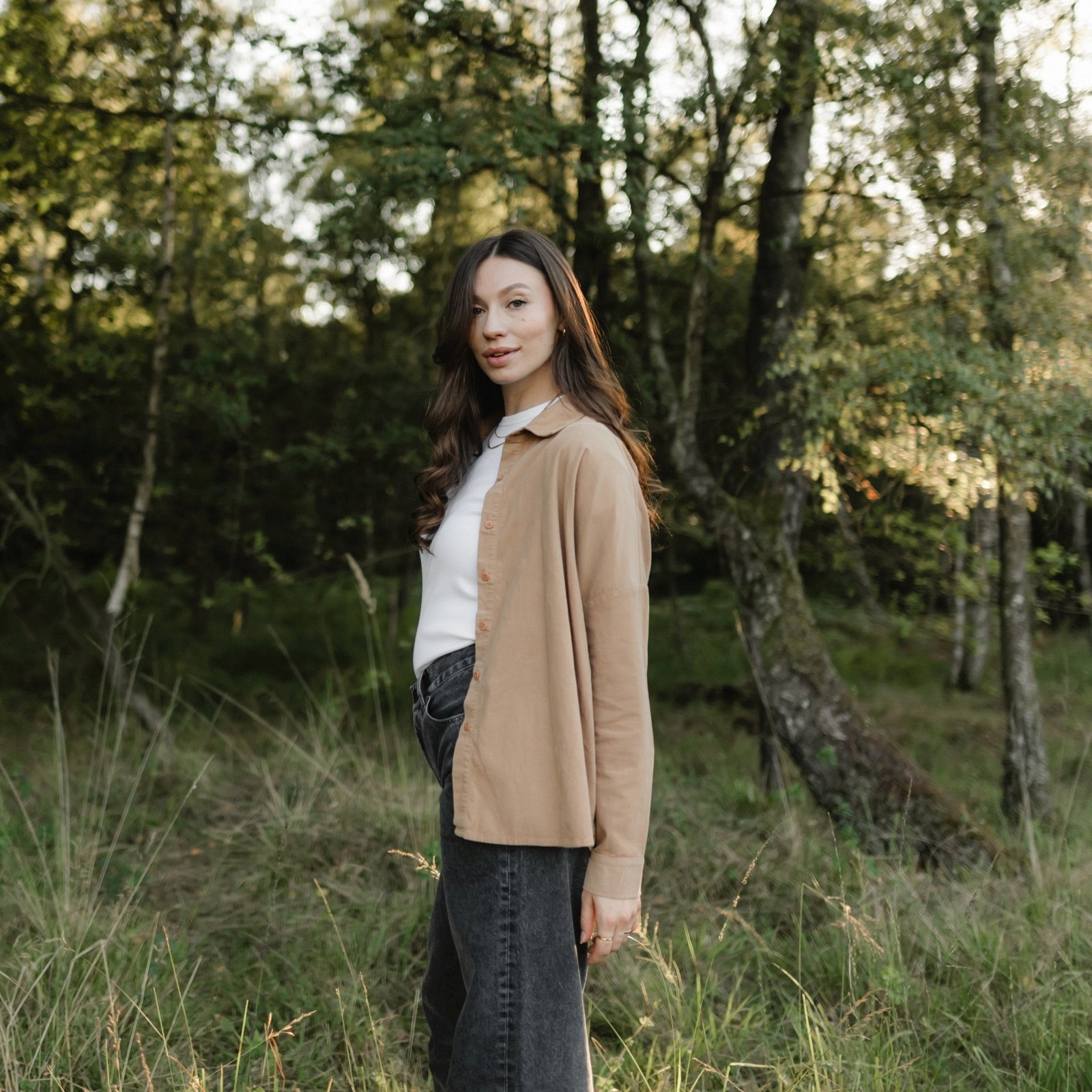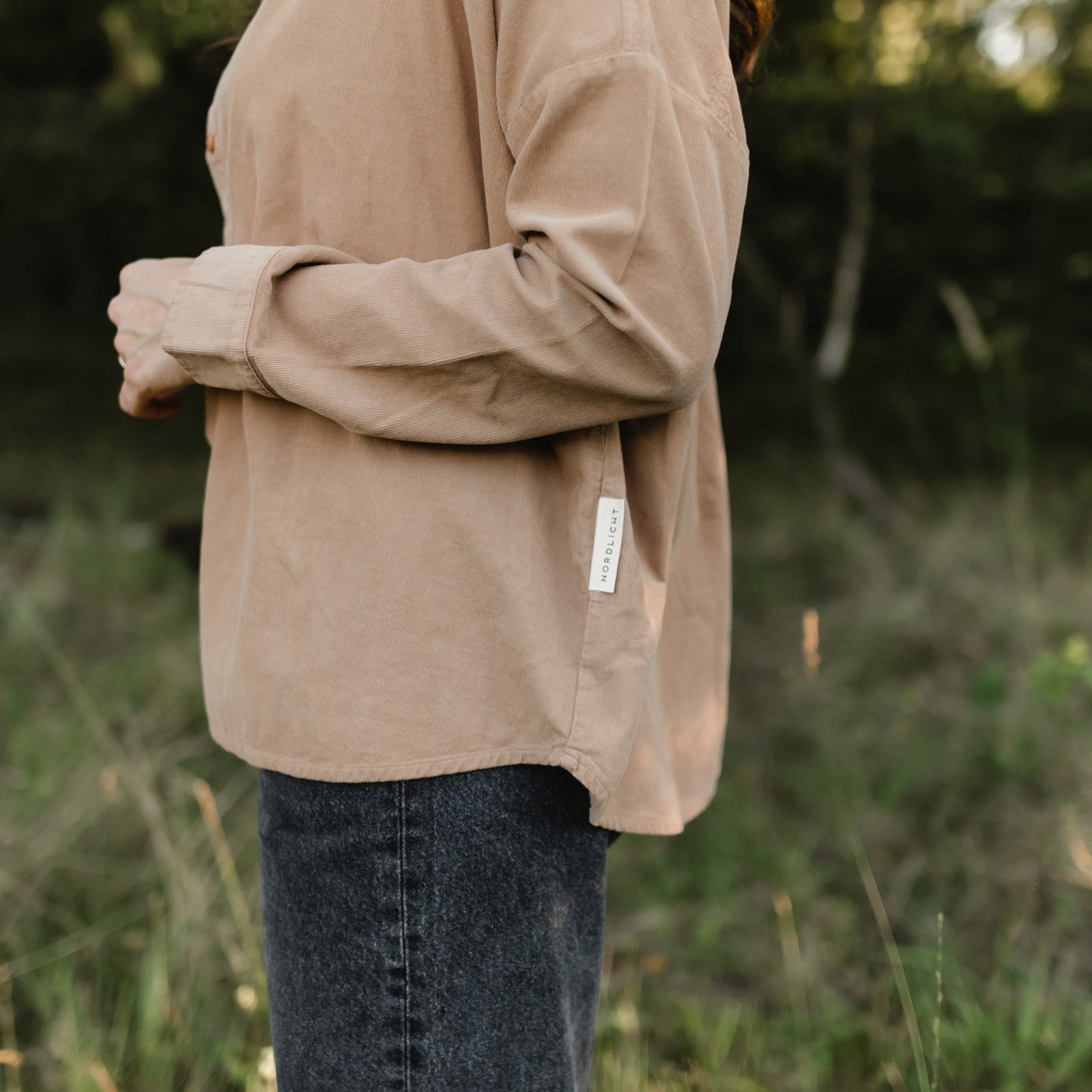 Die Nordlicht Cord Bluse Ruby verbindet moderne Lässigkeit mit hochwertiger Verarbeitung. Gefertigt aus weichem Babycord aus 100% Bio-Baumwolle, ist sie angenehm zu tragen und ideal für die kühleren Monate. Die lockere Passform, überschnittenen Schultern und tonalen Corozo-Knöpfe verleihen der Bluse eine entspannte Silhouette mit moderner Schlichtheit – vielseitig kombinierbar und zeitlos tragbar.