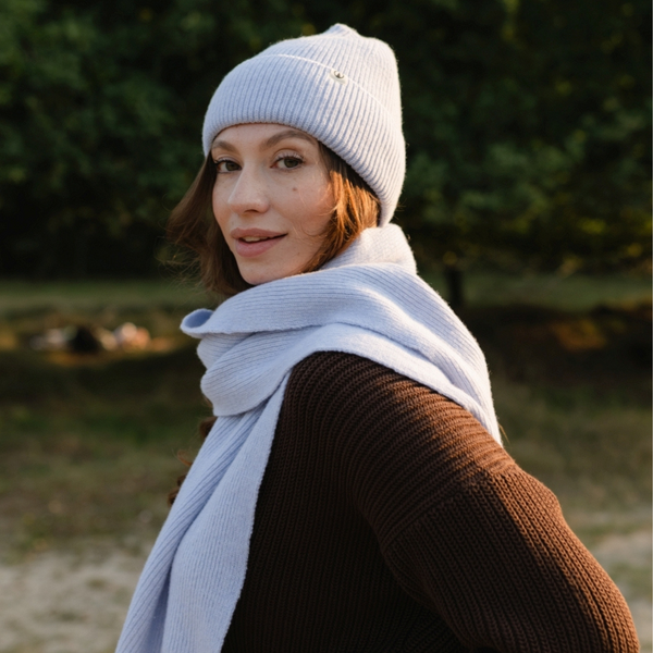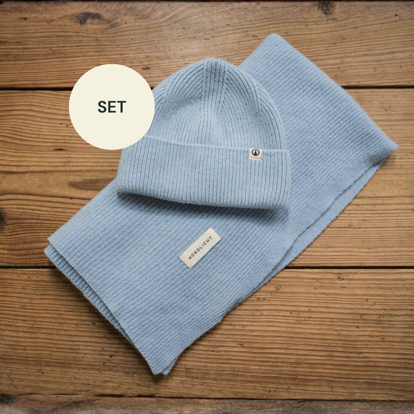 Set: Wollschal + Wollmütze Aus 100% recycelter Wolle