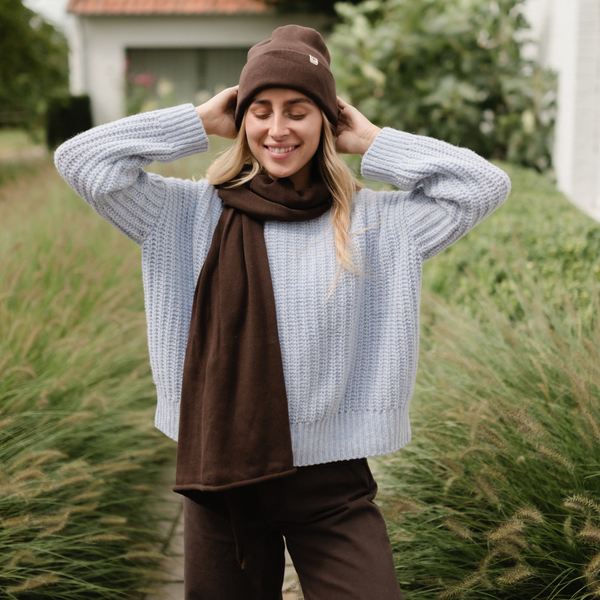 Set: Feinstrick Schal + Strickmütze Aus 50% Bio-Baumwolle & 50% recycelter Baumwolle