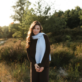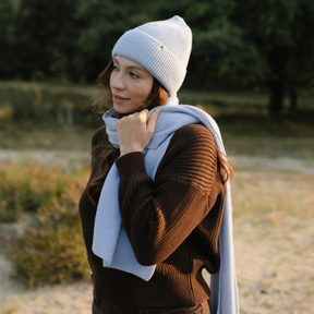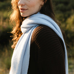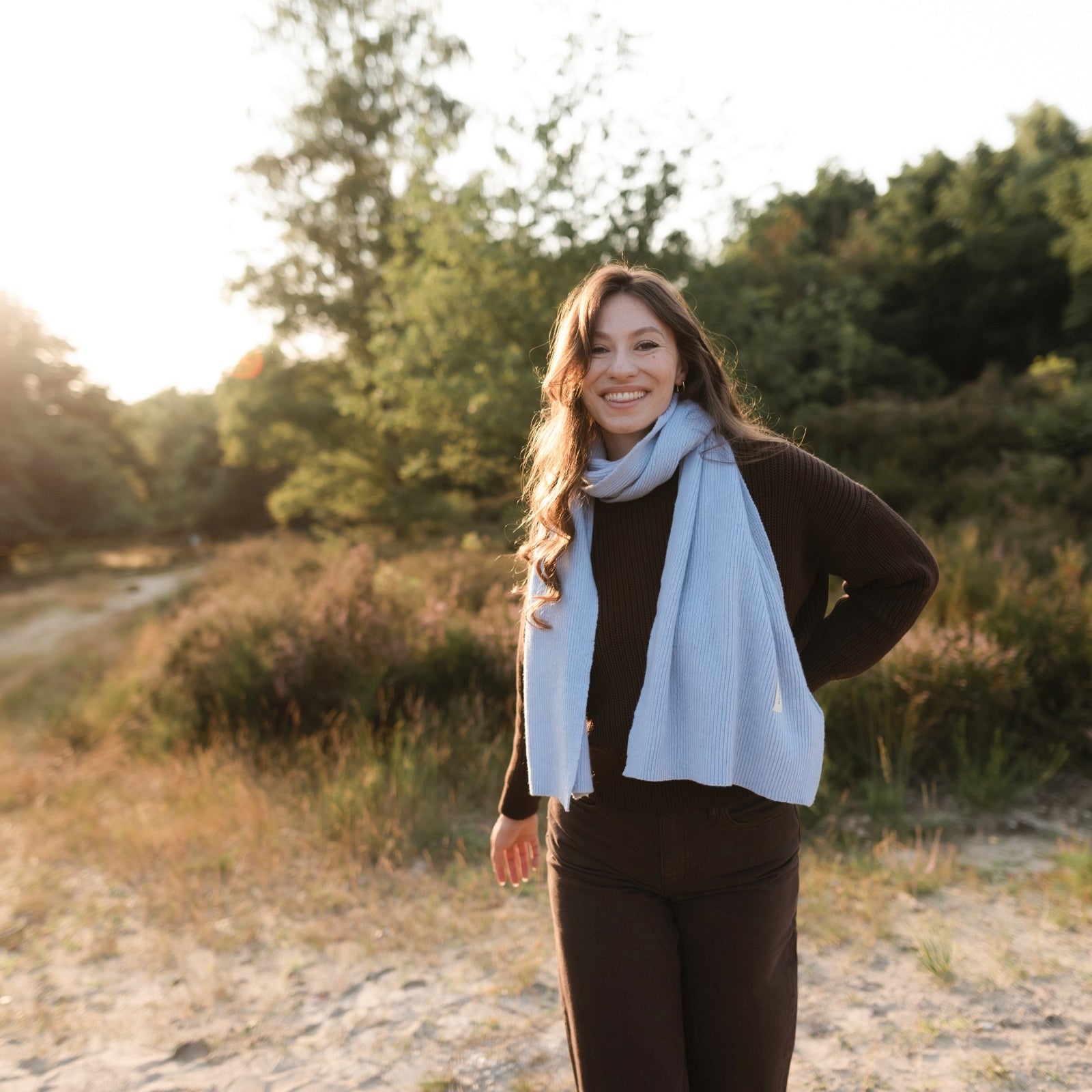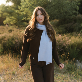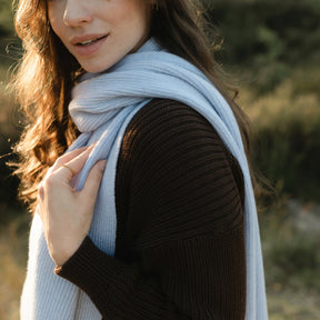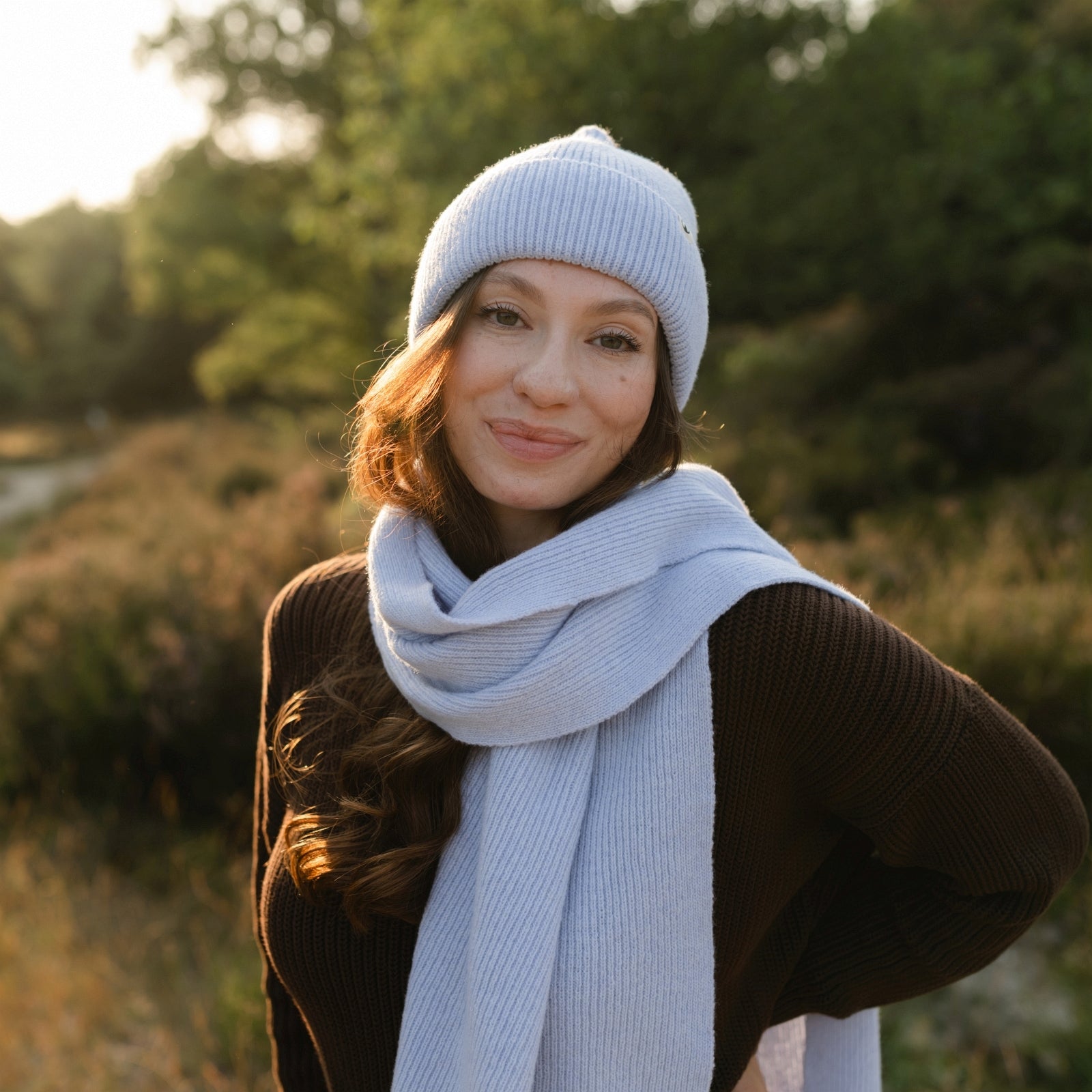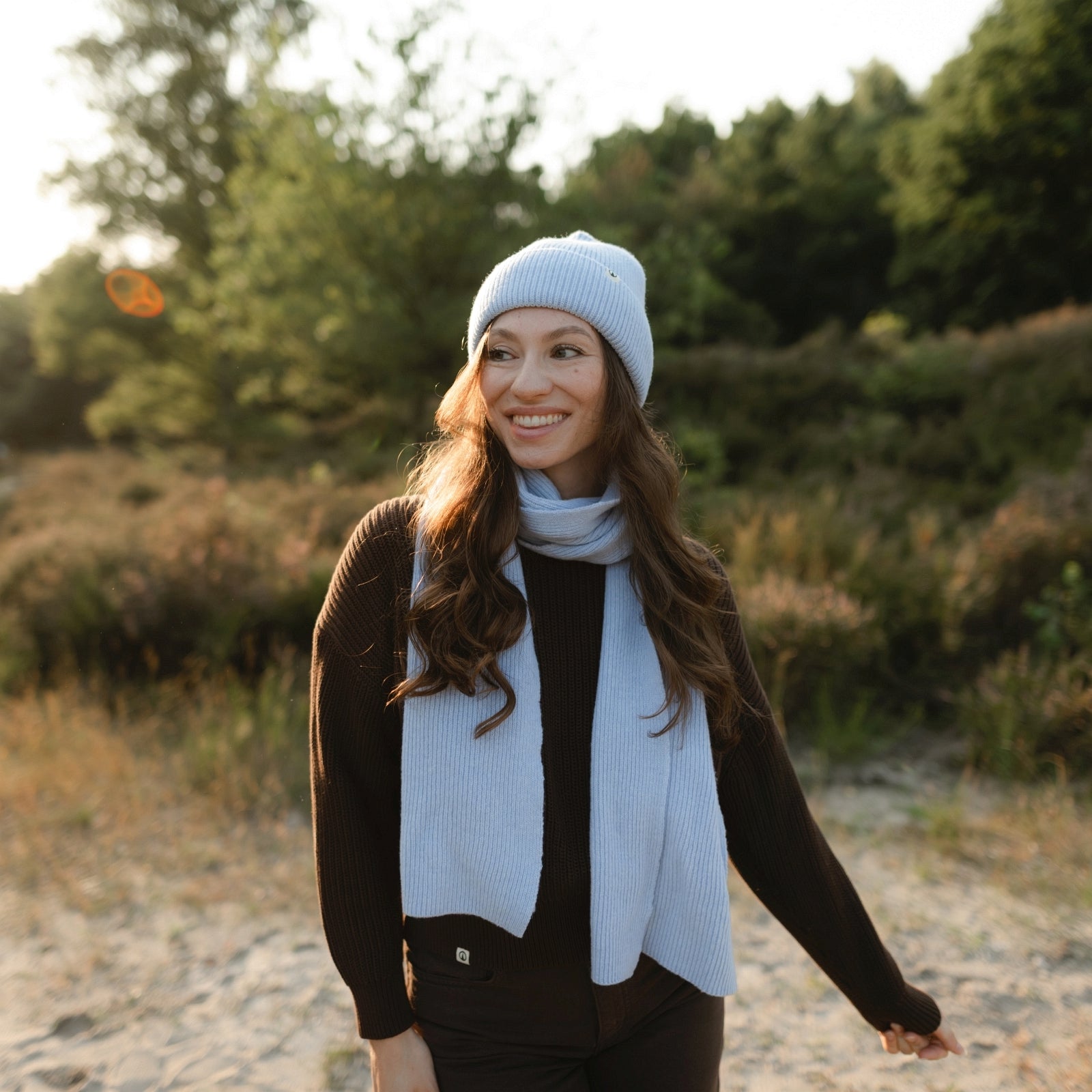 Unser Nordlicht Wollschal Mira aus 100% recycelter Wolle vereint Wärme, Komfort und Nachhaltigkeit auf natürliche Weise. Wolle hält im Winter schön warm und bleibt dabei atmungsaktiv und geruchsneutral. Die Fasern sind besonders weich und fein, dadurch ist der Schal sehr angenehm auf der Haut zu tragen. Dein neues Wärme-Must-Have der Saison.