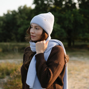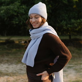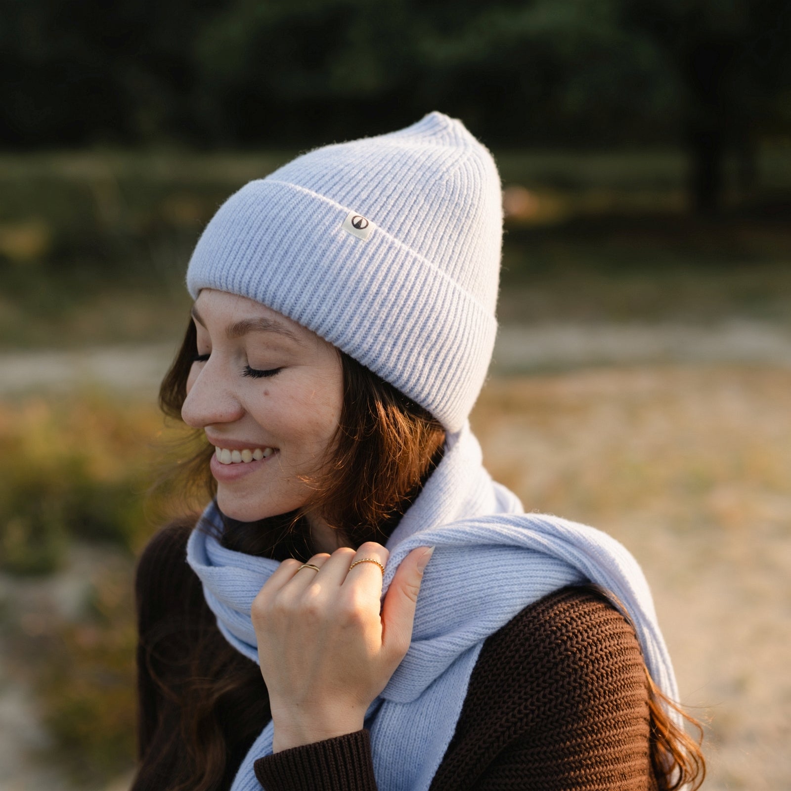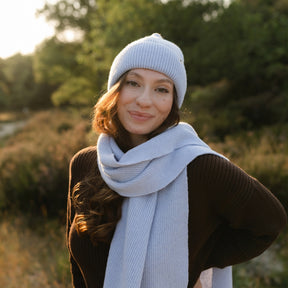 Set: Wollschal + Wollmütze Aus 100% recycelter Wolle