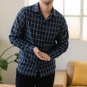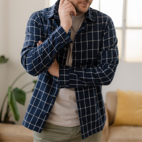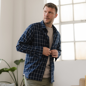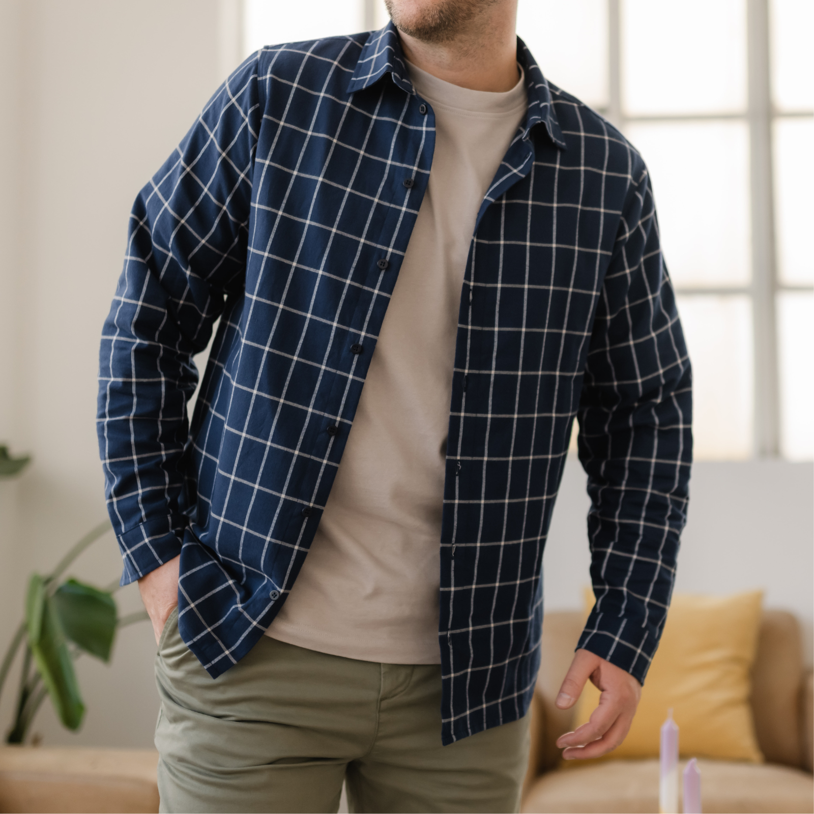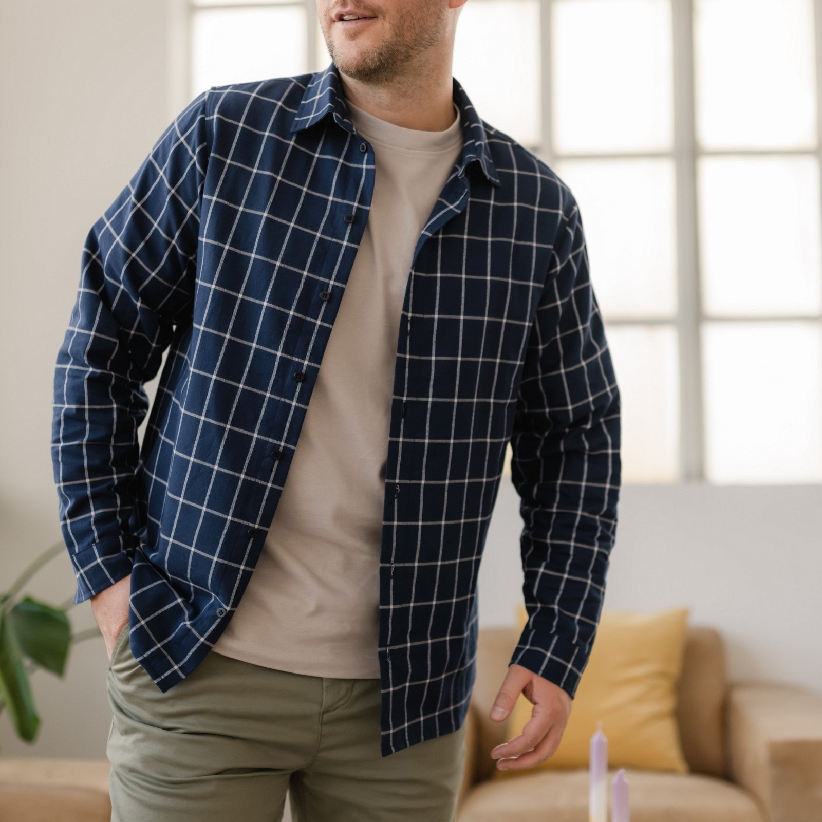 Stoff aus Bio-BaumwolleDas Nordlicht Herren Flanell Hemd Elis vereint klassischen Stil mit natürlichem Tragekomfort. Gefertigt aus weichem Flanell aus 100% Bio-Baumwolle, sorgt es für ein angenehmes Hautgefühl und hält zuverlässig warm – ideal für Herbst und Winter. Das zeitlose Karomuster, die lockere Passform und tonale Corozo-Knöpfe verleihen dem Hemd einen authentischen Look, der sich vielseitig kombinieren lässt – ob offen getragen über einem Shirt oder klassisch geschlossen.