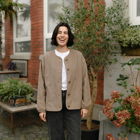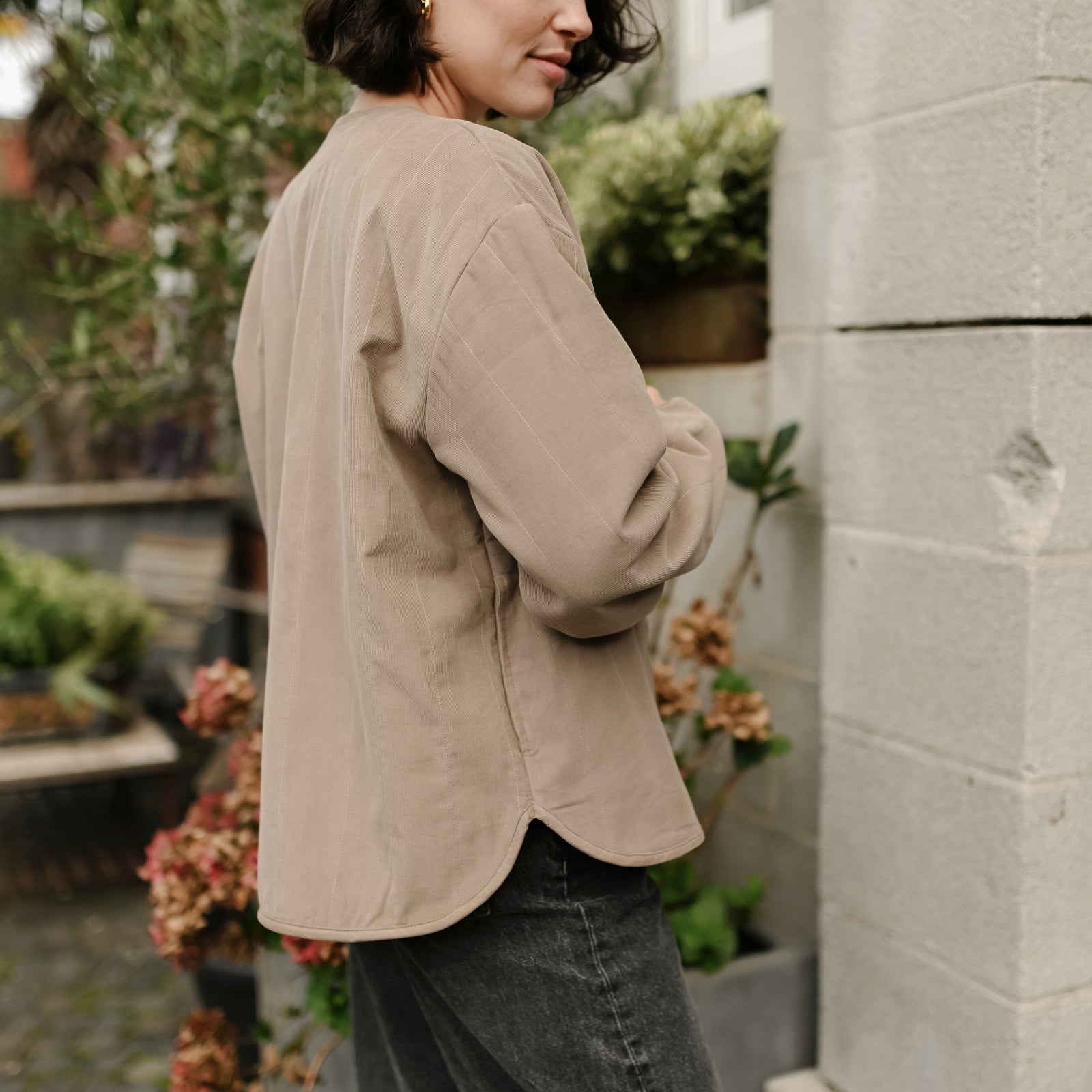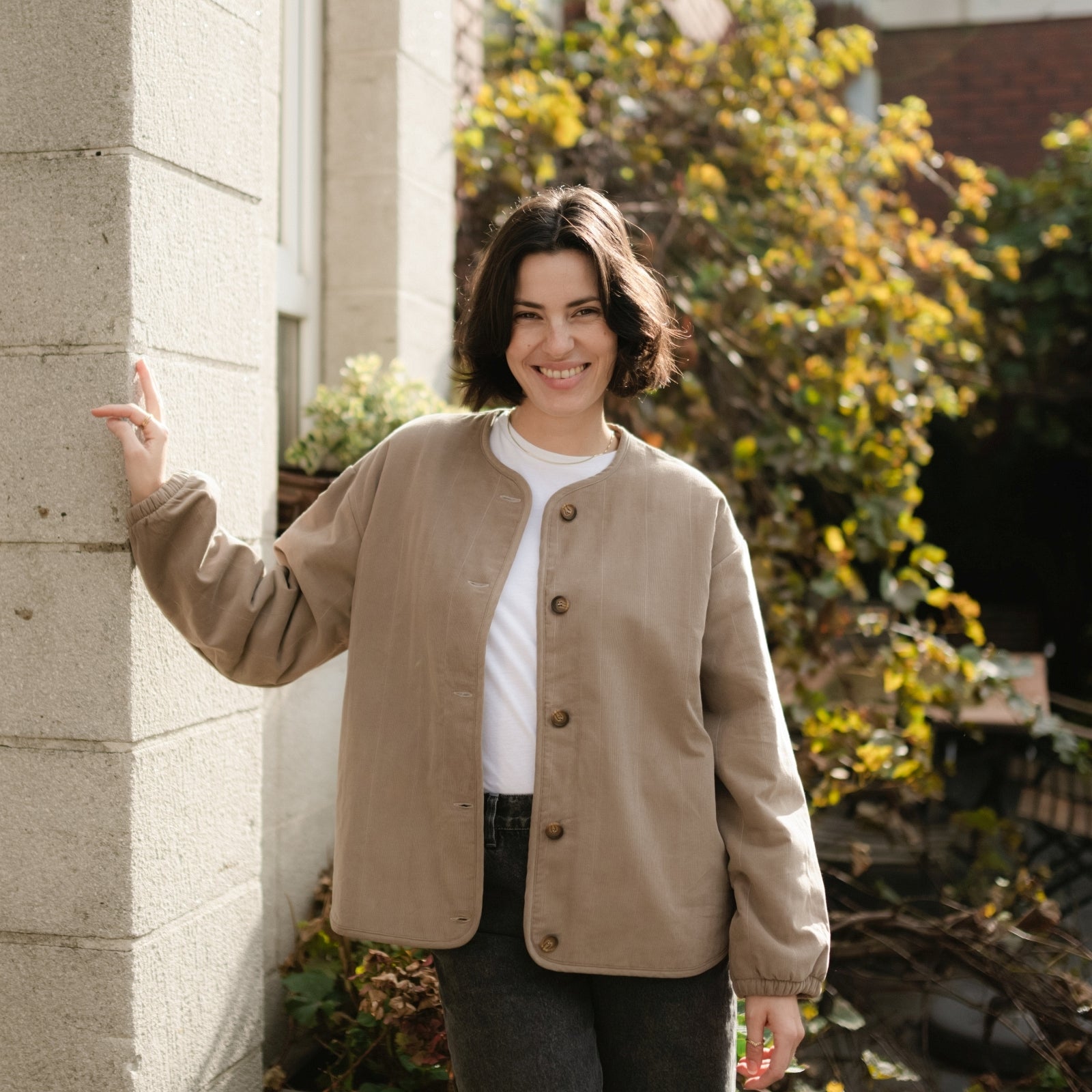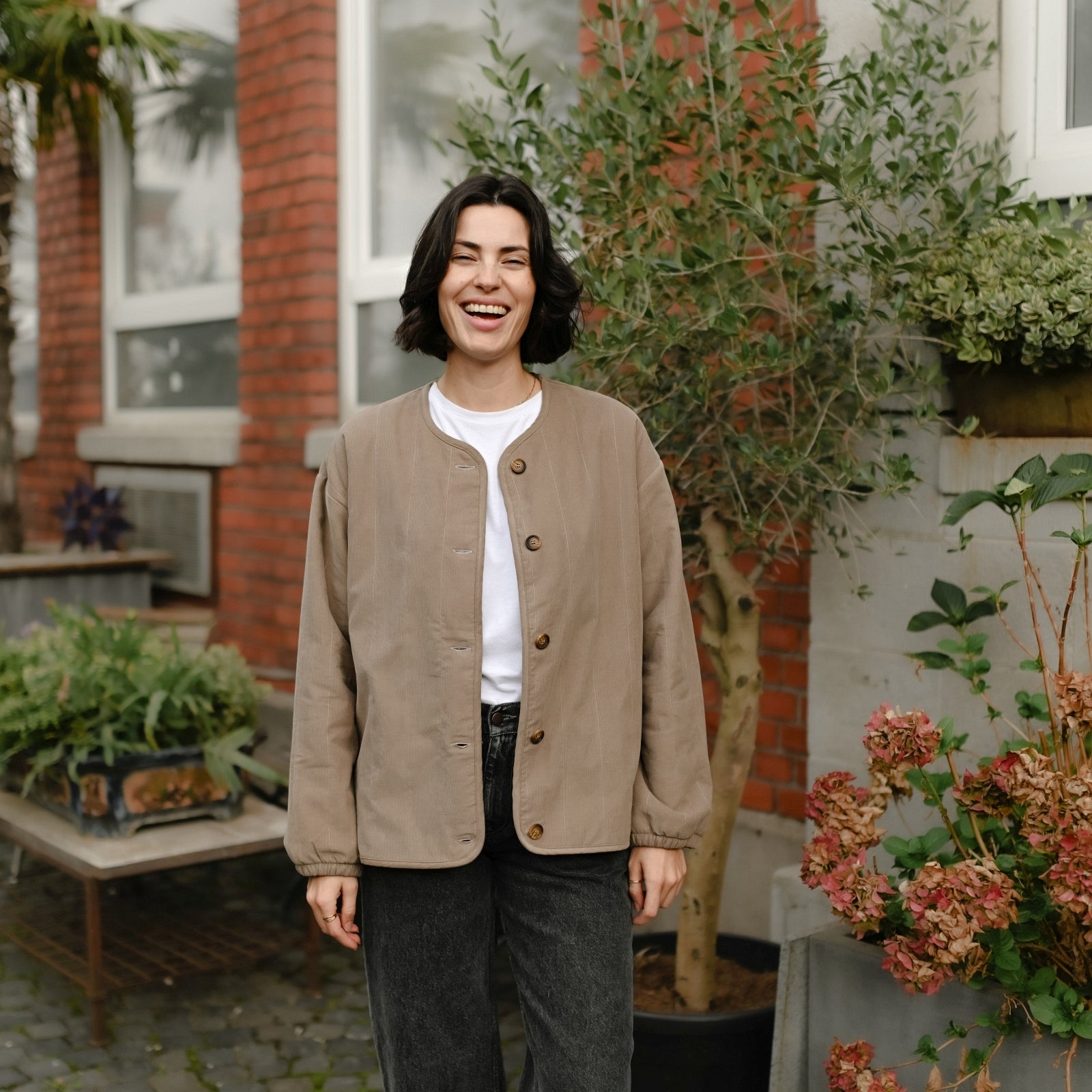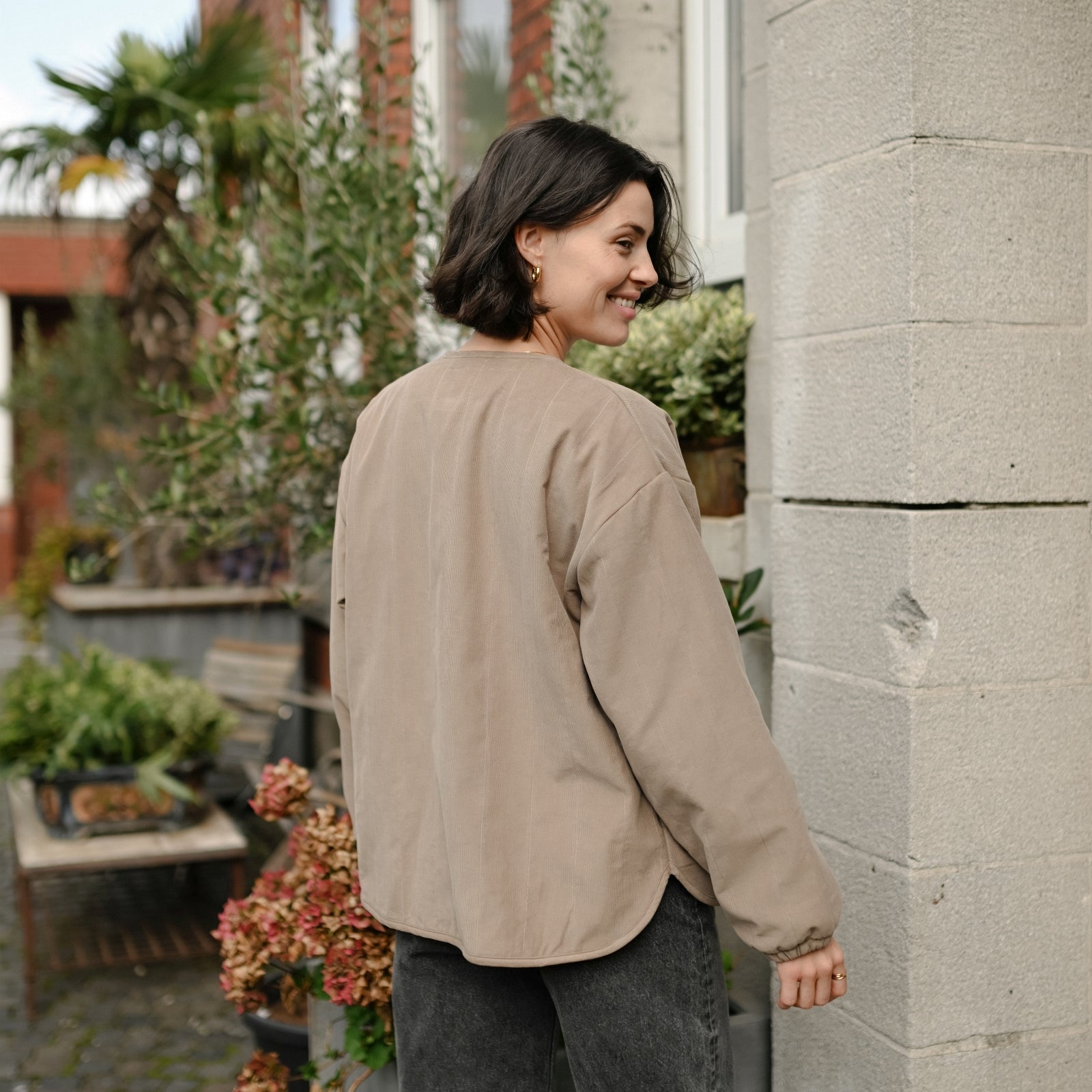 Mit unserer Nordlicht Cord Jacke Jana ziehst du stilvoll durch die Übergangszeit – natürlich, bequem und nachhaltig. Gefertigt aus weichem Babycord aus 100% Bio-Baumwolle überzeugt sie mit einer sanften Haptik und einem minimalistischen Look, der sich mühelos kombinieren lässt. Die gerade Passform mit dezent gerundetem Saum und Knopfleiste bringt lässige Klarheit in deinen Alltag. Ob offen getragen über Shirt oder geschlossen als leichte Jacke – dieses Piece passt sich deinem Stil flexibel an und ist ideal für den Lagenlook bei wechselhaftem Wetter.