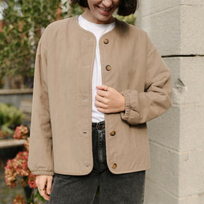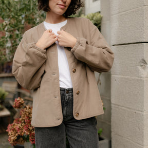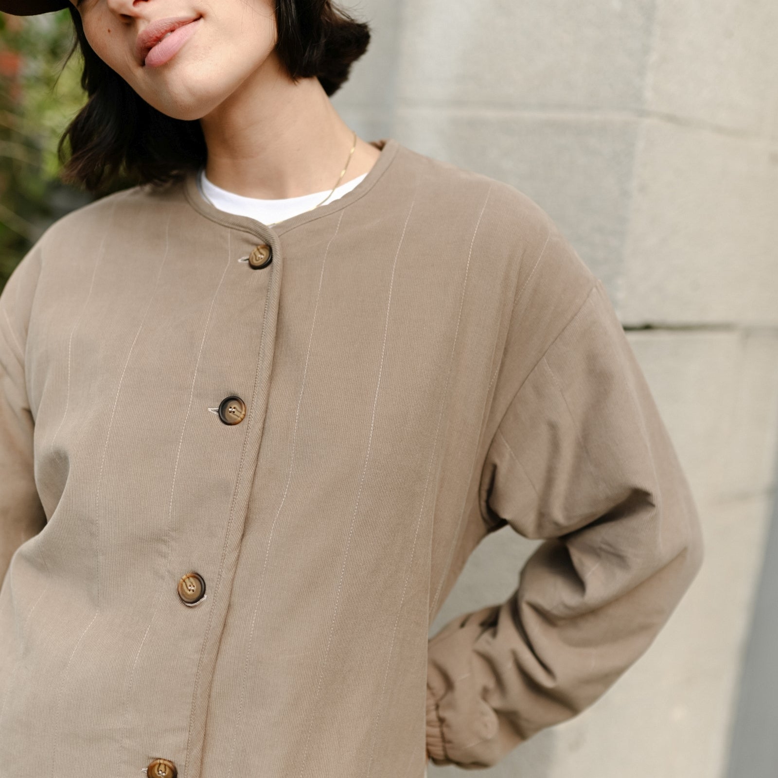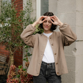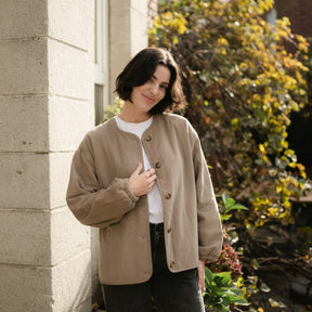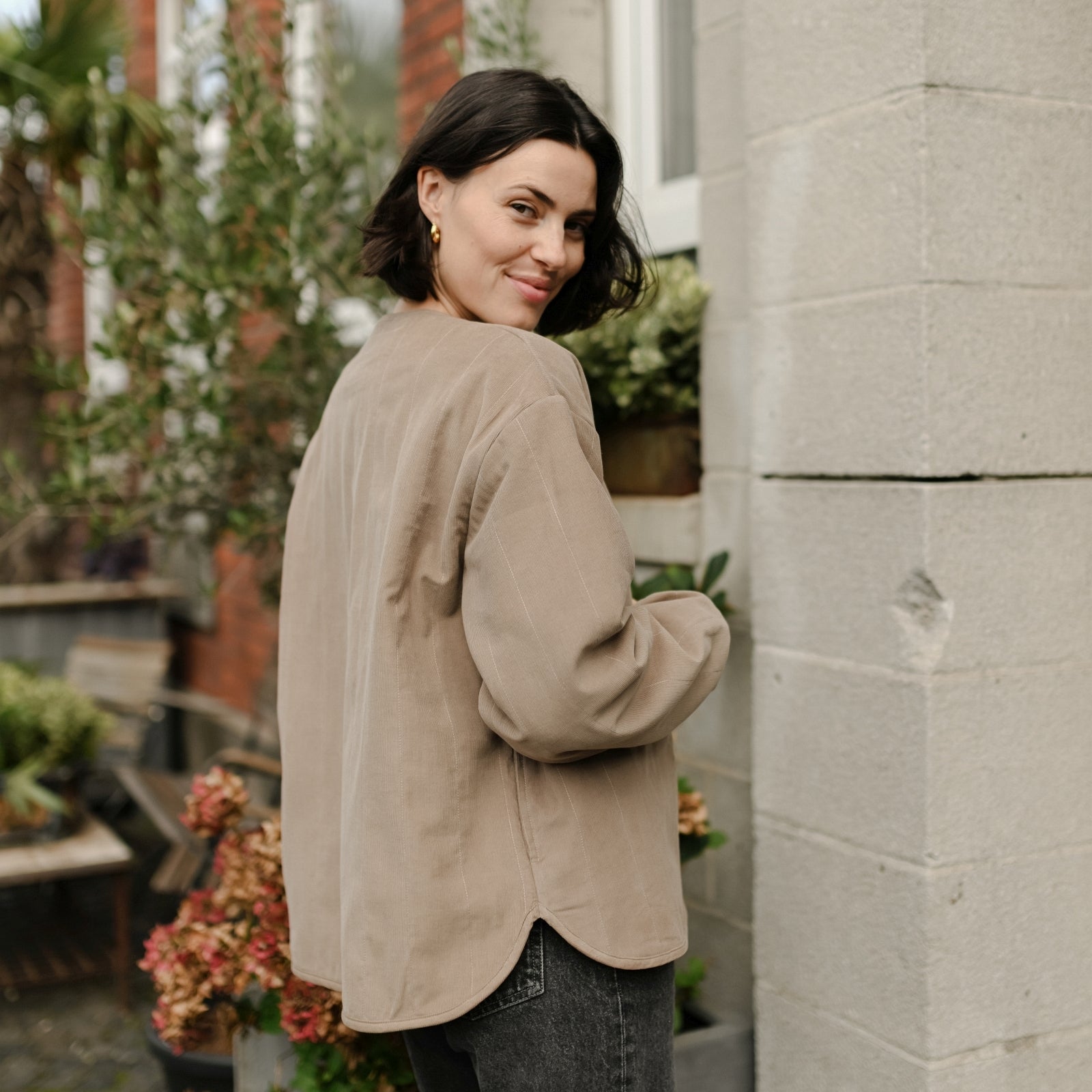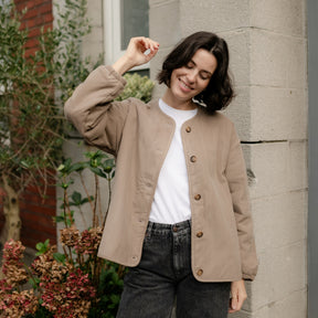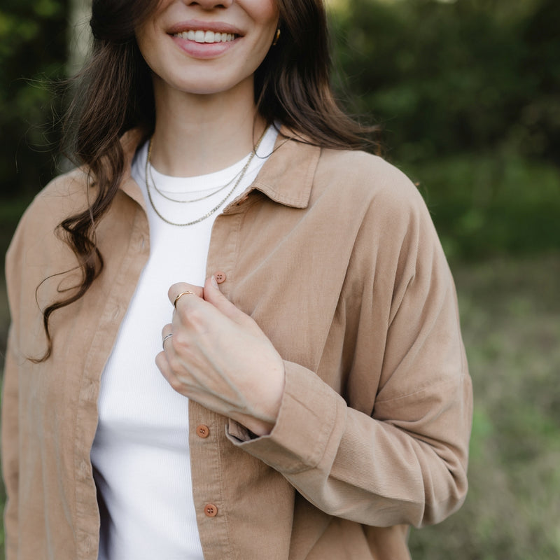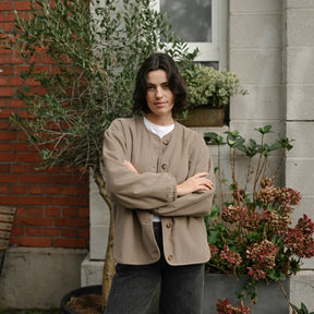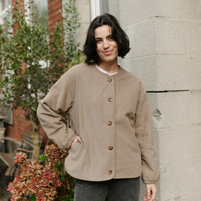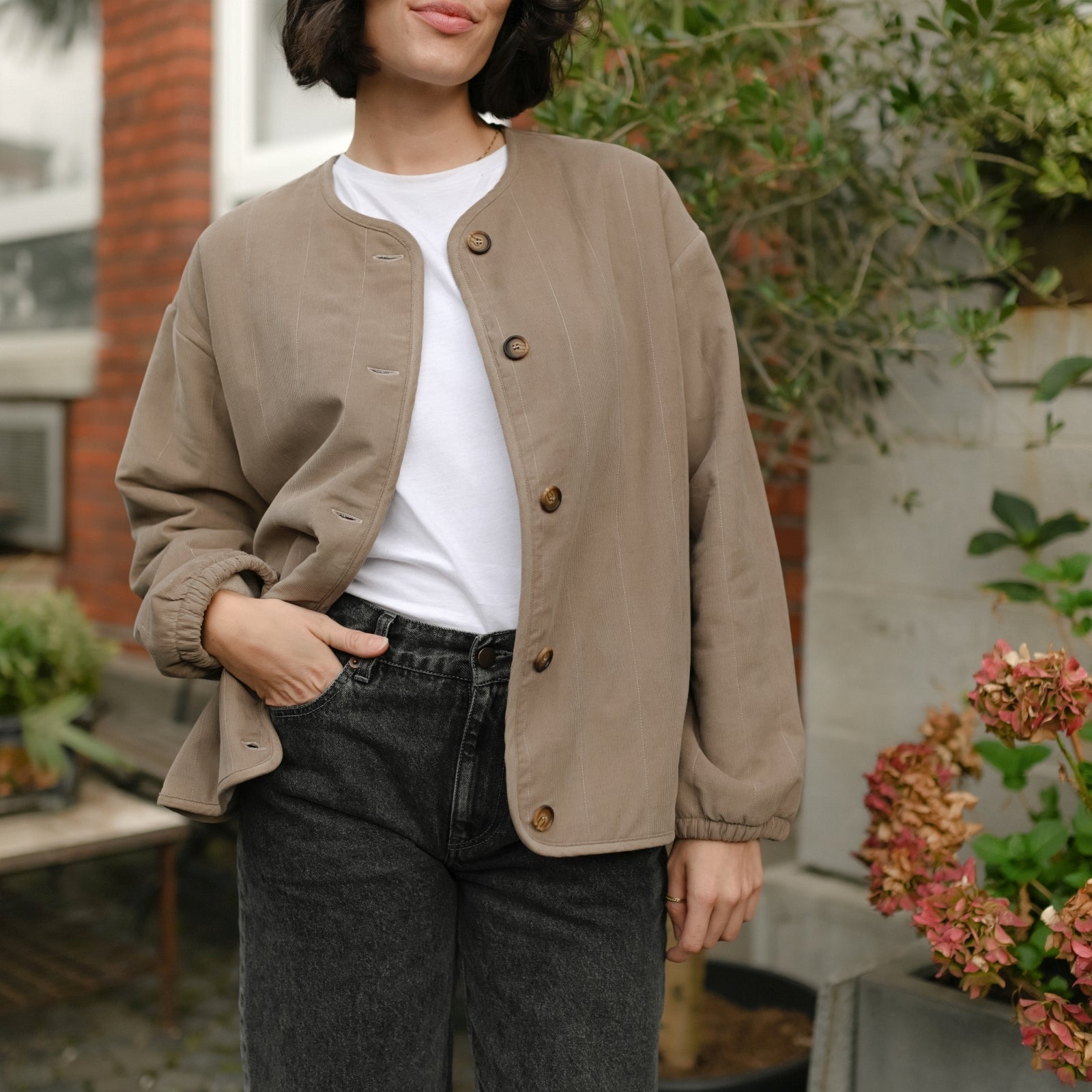 Mit unserer Nordlicht Cord Jacke Jana ziehst du stilvoll durch die Übergangszeit – natürlich, bequem und nachhaltig. Gefertigt aus weichem Babycord aus 100% Bio-Baumwolle überzeugt sie mit einer sanften Haptik und einem minimalistischen Look, der sich mühelos kombinieren lässt. Die gerade Passform mit dezent gerundetem Saum und Knopfleiste bringt lässige Klarheit in deinen Alltag. Ob offen getragen über Shirt oder geschlossen als leichte Jacke – dieses Piece passt sich deinem Stil flexibel an und ist ideal für den Lagenlook bei wechselhaftem Wetter.