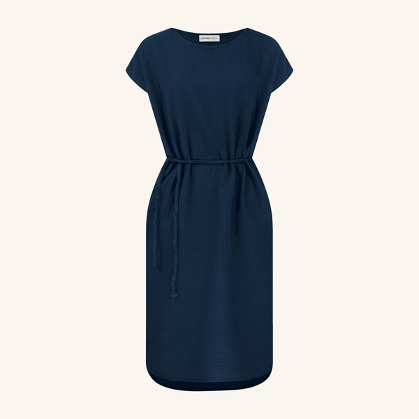 Musselin aus Bio-BaumwolleDas nachhaltige Musselin-Kleid “Elin Kurz” aus 100% Bio-Baumwolle, handgefertigt in Portugal, vereint Stil und Umweltbewusstsein. Der luftige Stoff bietet natürliche Temperaturregulierung und angenehmen Tragekomfort. Mit seitlichen Taschen und einem vorteilhaften Schnitt ist “Elin kurz” praktisch und schmeichelt jeder Figur.