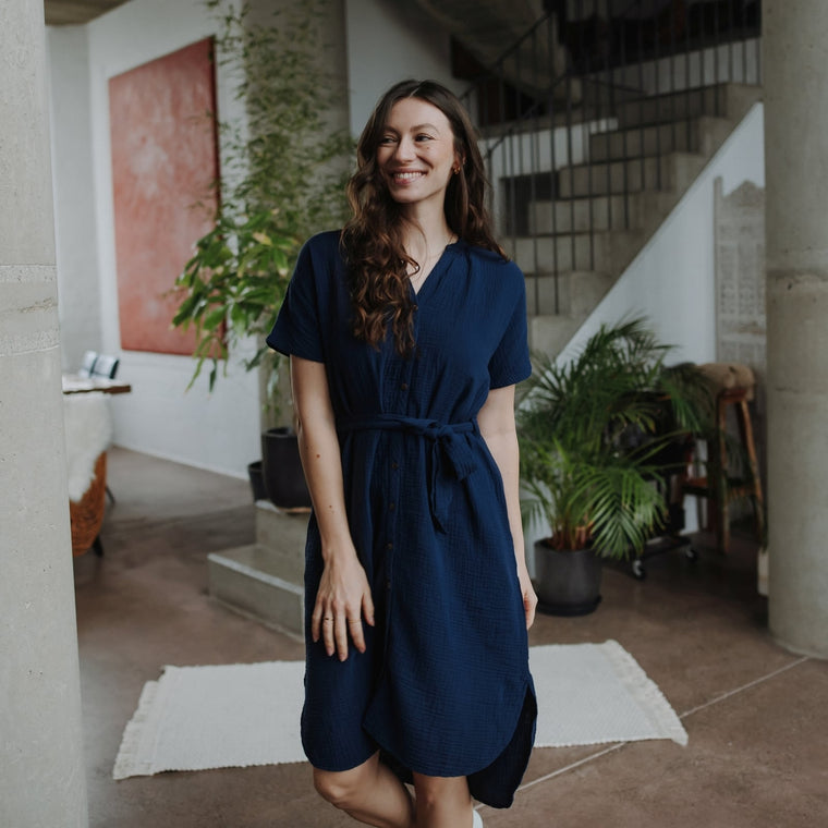 Wunderbar weich und leicht und dabei von guter blickdichter wertiger Qualität. Das ganze Jahr tragbar. Es ist zwar lang aber nicht zu und auch leicht hoch zu binden. Ich trage normalerweise Größe 36/38 und S ist für mich perfekt. Armlänge inklusive. Der Schnitt ist toll. Das Blau ist ist ein leuchtendes Marineblau, etwas weicher und heller im Ton als auf den Bildern, was ich liebe. Lieblingshemd.