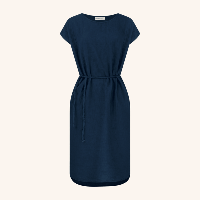 Musselin aus Bio-BaumwolleDas nachhaltige Musselin-Kleid “Elin Kurz” aus 100% Bio-Baumwolle, handgefertigt in Portugal, vereint Stil und Umweltbewusstsein. Der luftige Stoff bietet natürliche Temperaturregulierung und angenehmen Tragekomfort. Mit seitlichen Taschen und einem vorteilhaften Schnitt ist “Elin kurz” praktisch und schmeichelt jeder Figur.