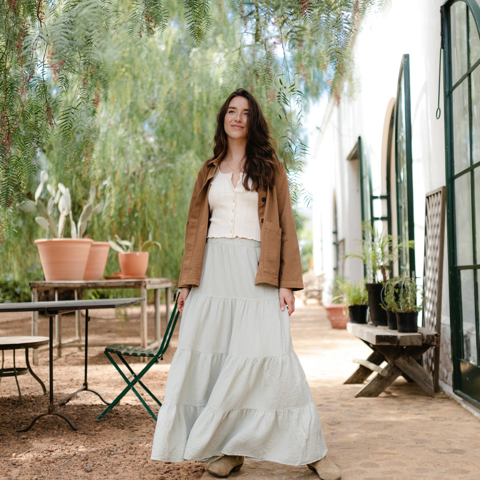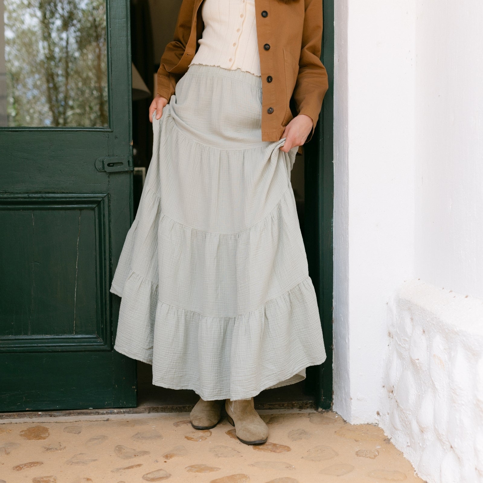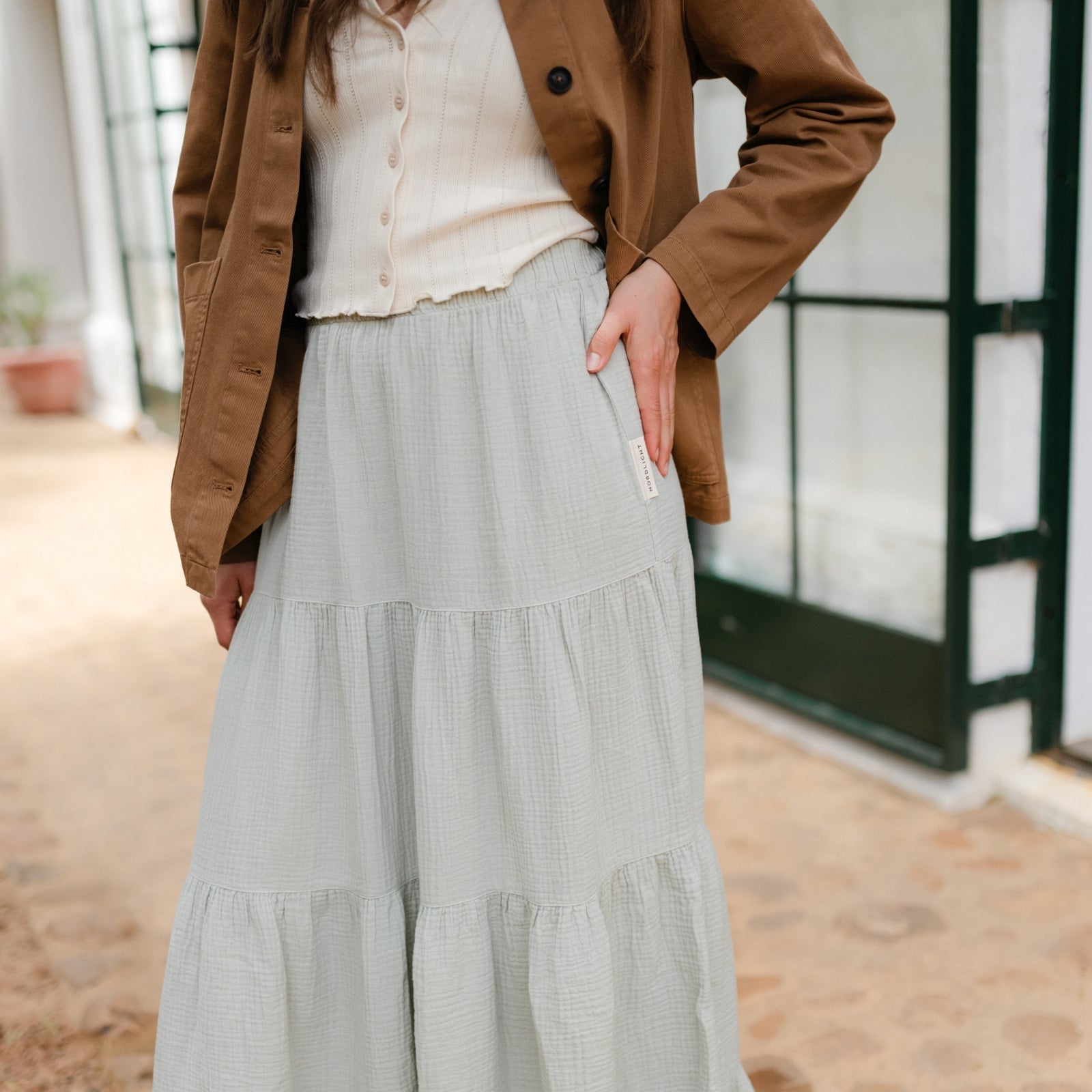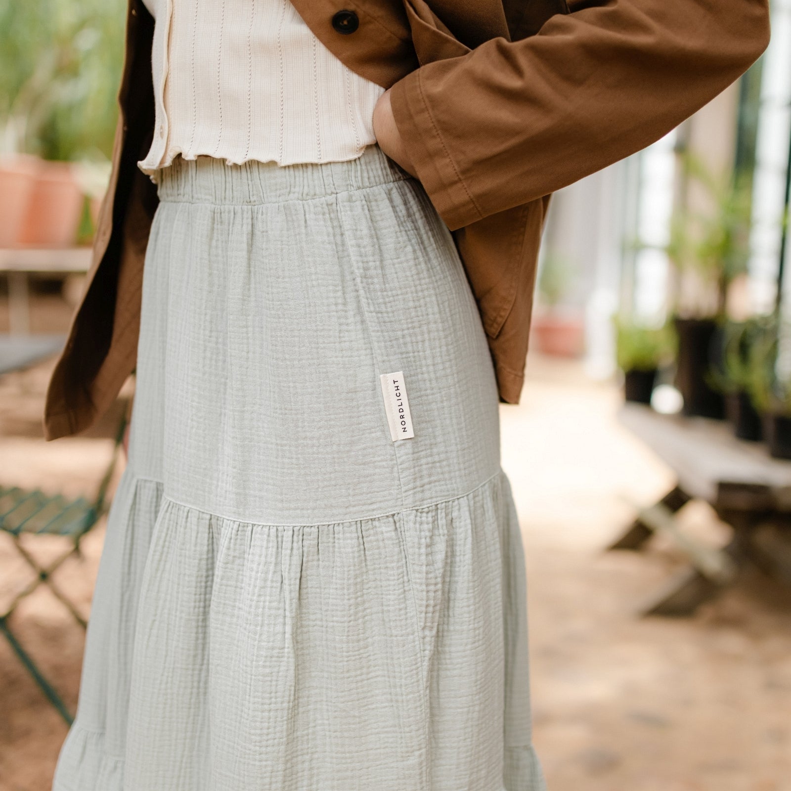 Musselin aus Bio-BaumwolleMit dem Nordlicht Musselin Maxi Volant Rock Adda bringst du Bewegung und Leichtigkeit in deine Garderobe. Aus 100% Bio-Baumwolle gefertigt, überzeugt Adda mit seiner weichen, atmungsaktiven Struktur und einem fließenden Fall, der jede Bewegung sanft begleitet. Der Gummizug in der Taille sorgt für bequemen Sitz und macht den Rock vielseitig tragbar – ob lässig mit T-Shirt oder etwas schicker gestylt. Die feminine Volant-Silhouette in Maxilänge verleiht deinem Look eine besondere Note, ohne dabei auf Komfort zu verzichten.