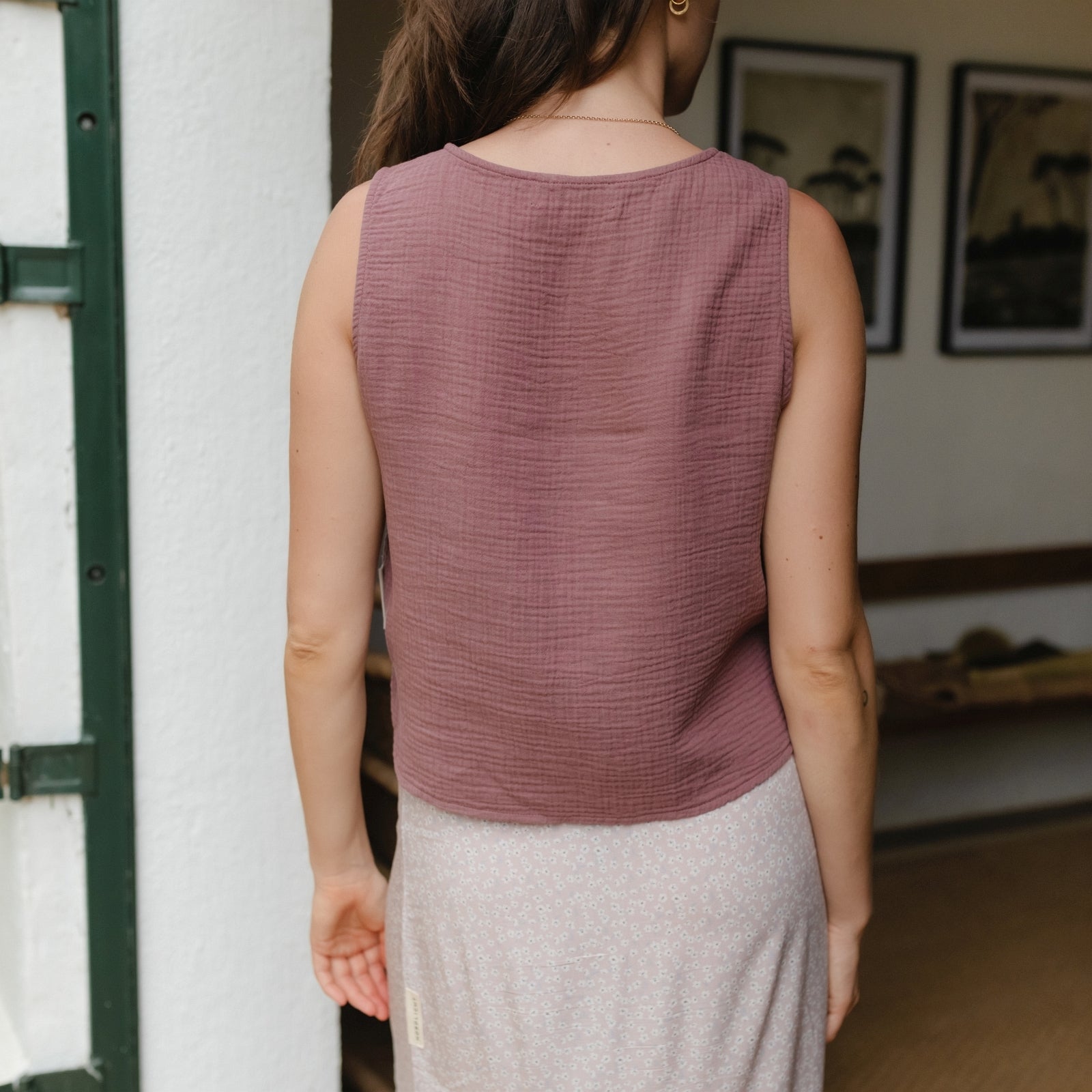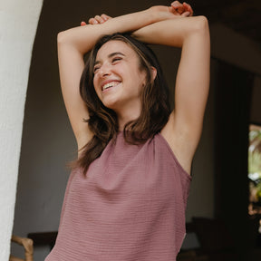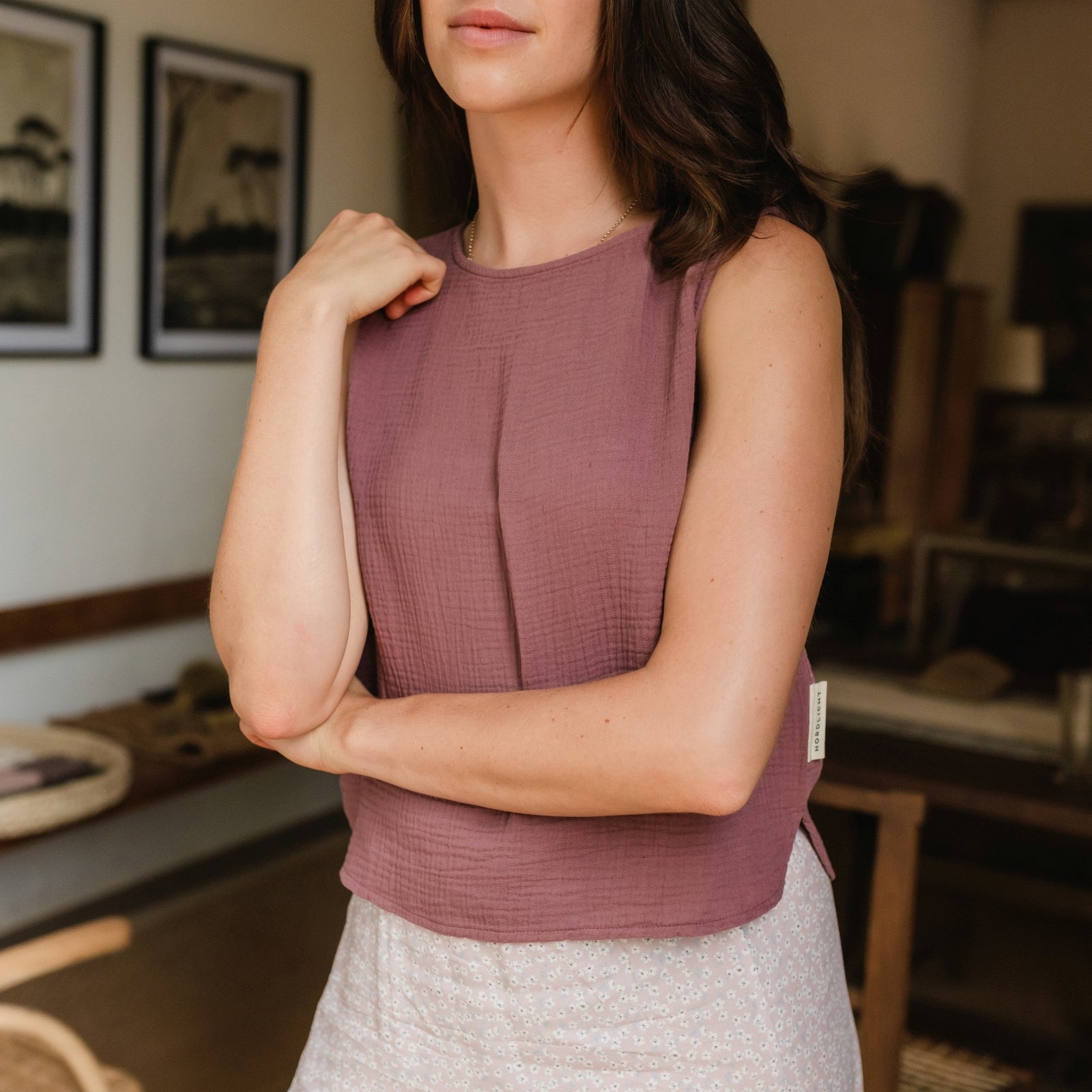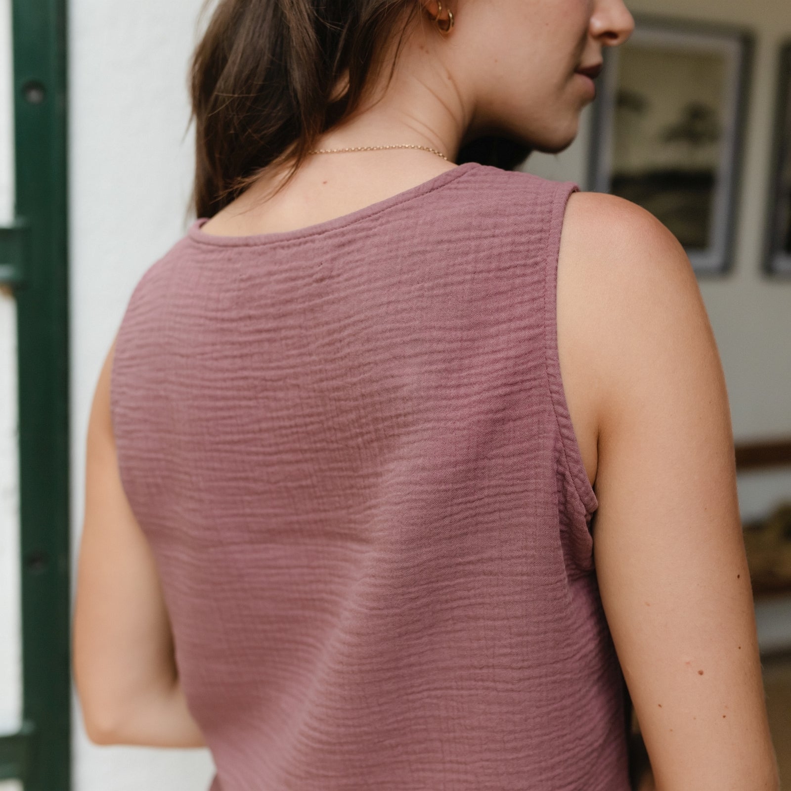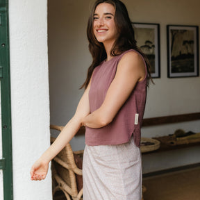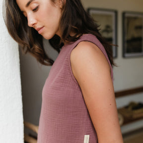Musselin aus Bio-BaumwolleDas Nordlicht Musselin Top Insa ist dein unkomplizierter Begleiter für warme Tage. Gefertigt aus 100% Bio-Baumwolle überzeugt es mit einer weichen, atmungsaktiven Struktur und einem angenehm leichten Tragegefühl. Die ärmellose Form und die lockere Passform machen Insa ideal für entspannte Alltagslooks – solo getragen oder als luftige Ergänzung unter Jacke oder offener Bluse. Ein vielseitiges Basic für alle, die es natürlich und nachhaltig mögen.
