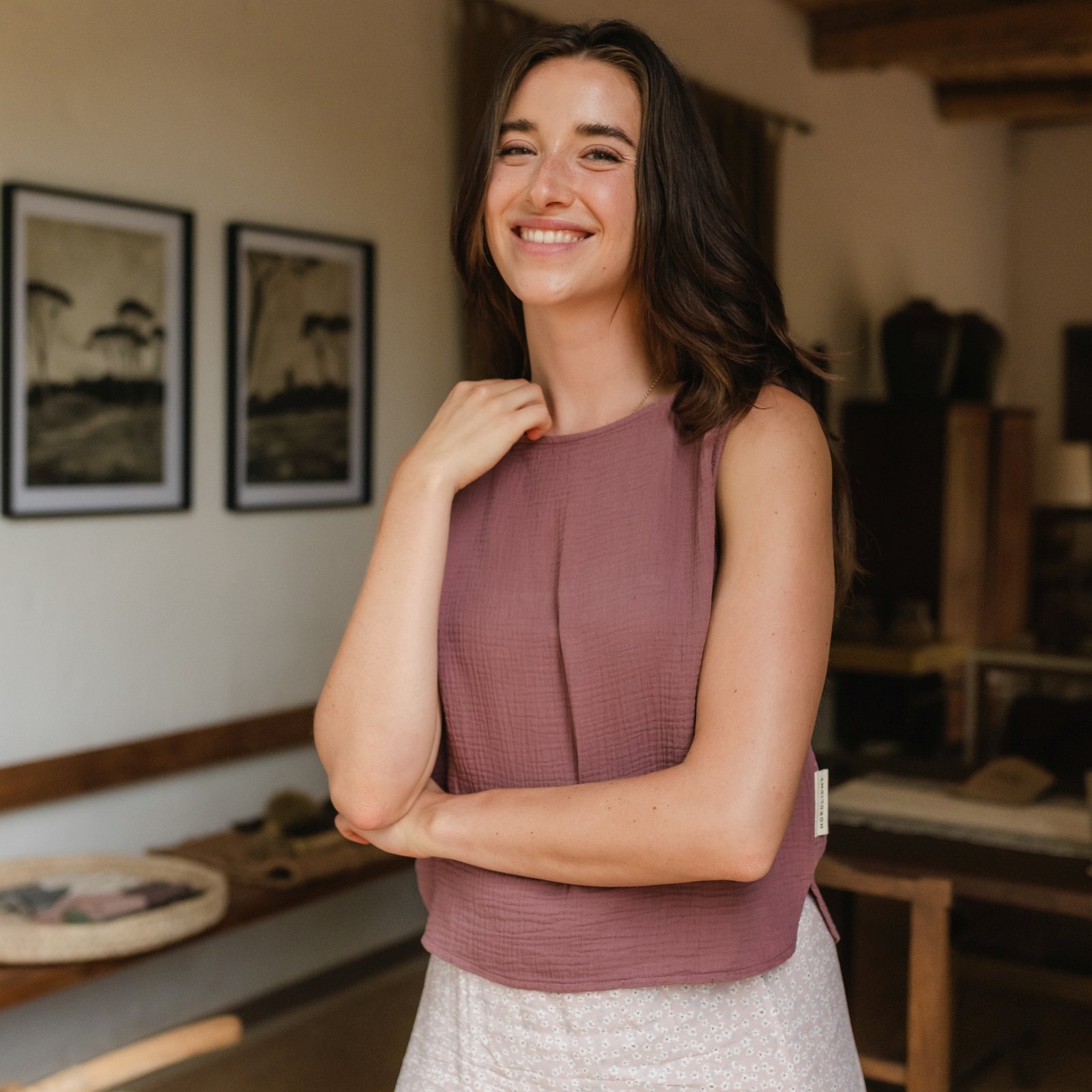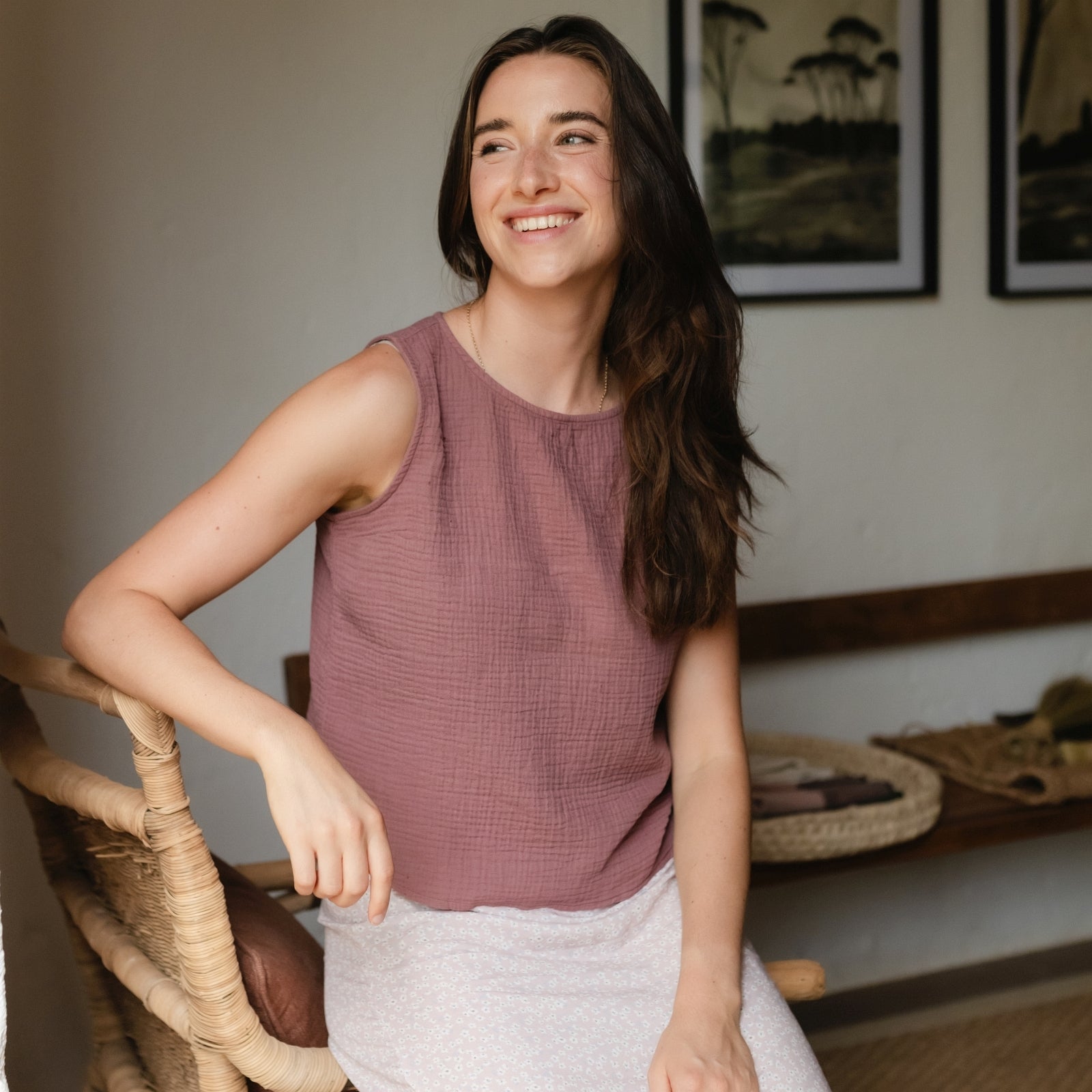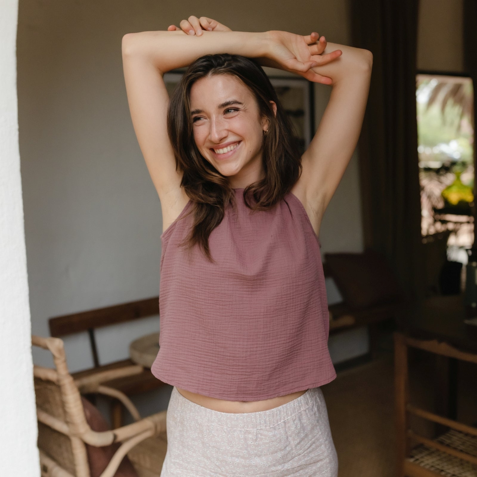 Musselin aus Bio-BaumwolleDas Nordlicht Musselin Top Insa ist dein unkomplizierter Begleiter für warme Tage. Gefertigt aus 100% Bio-Baumwolle überzeugt es mit einer weichen, atmungsaktiven Struktur und einem angenehm leichten Tragegefühl. Die ärmellose Form und die lockere Passform machen Insa ideal für entspannte Alltagslooks – solo getragen oder als luftige Ergänzung unter Jacke oder offener Bluse. Ein vielseitiges Basic für alle, die es natürlich und nachhaltig mögen.