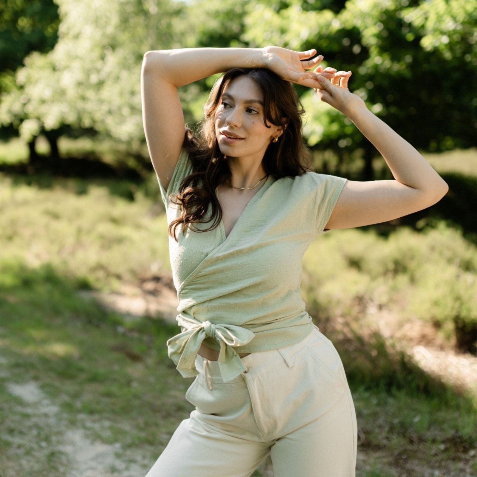 Musselin Wickelbluse Freda Kurz mit Punkten