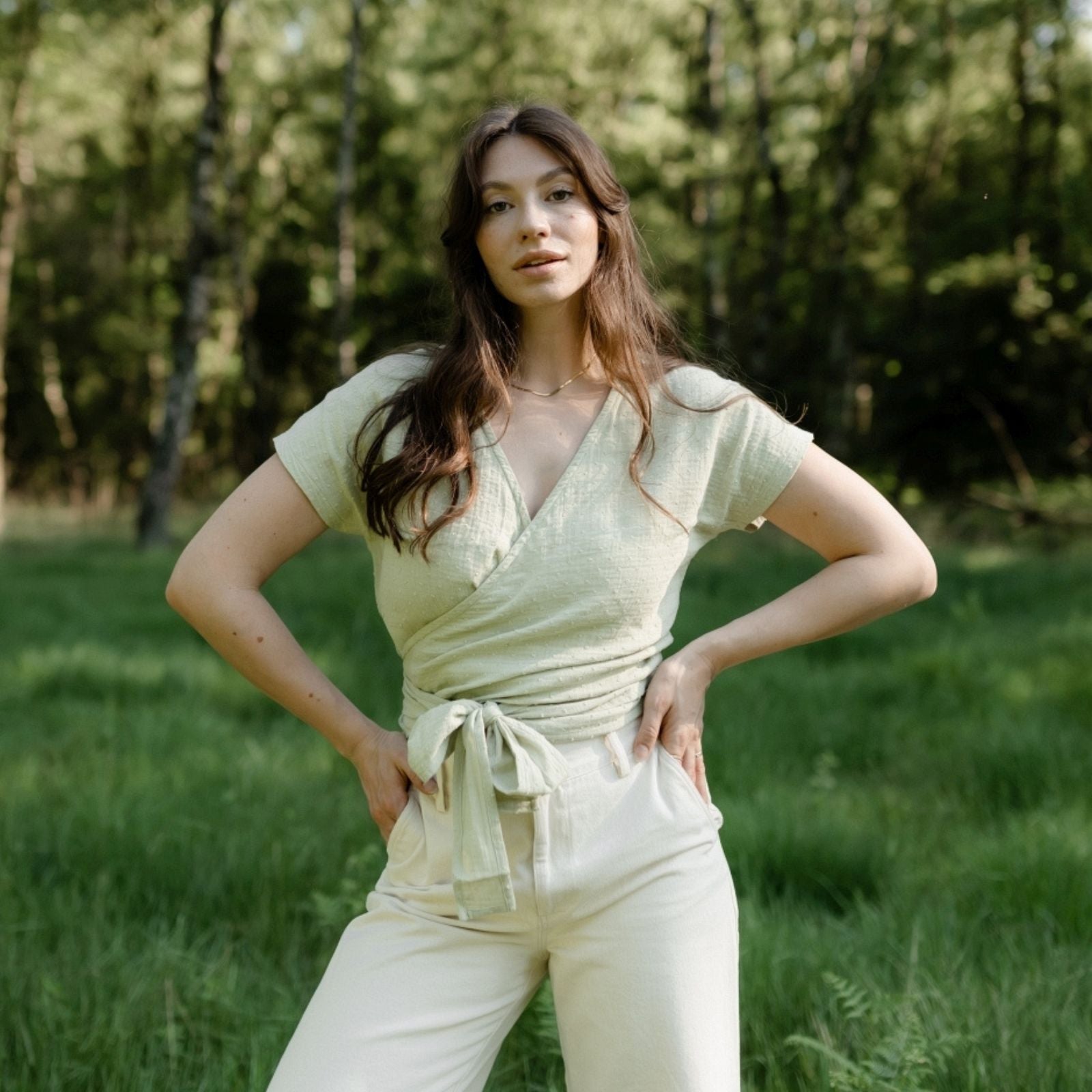 Die nachhaltige Nordlicht Wickelbluse "Freda kurz" ist nicht nur umweltfreundlich und fair, sondern auch stilvoll und vielseitig. Aus 100% Bio-Baumwolle gefertigt und in Barcelos, Portugal, hergestellt, vereint sie Ethik und Mode. Der Musselin-Stoff mit Punkten verleiht ihr einen charmanten Look, während der Wickelverschluss eine individuelle Anpassung ermöglicht, die sich perfekt an deine Figur anpasst. Diese Bluse ist nicht nur eine nachhaltige Wahl, sondern auch eine praktische und stilvolle Ergänzung für jede Garderobe.