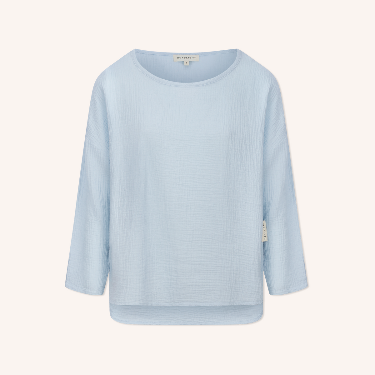 Wunderbar weich und leicht und dabei von guter blickdichter wertiger Qualität. Das ganze Jahr tragbar. Es ist zwar lang aber nicht zu und auch leicht hoch zu binden. Ich trage normalerweise Größe 36/38 und S ist für mich perfekt. Armlänge inklusive. Der Schnitt ist toll. Das Blau ist ist ein leuchtendes Marineblau, etwas weicher und heller im Ton als auf den Bildern, was ich liebe. Lieblingshemd.