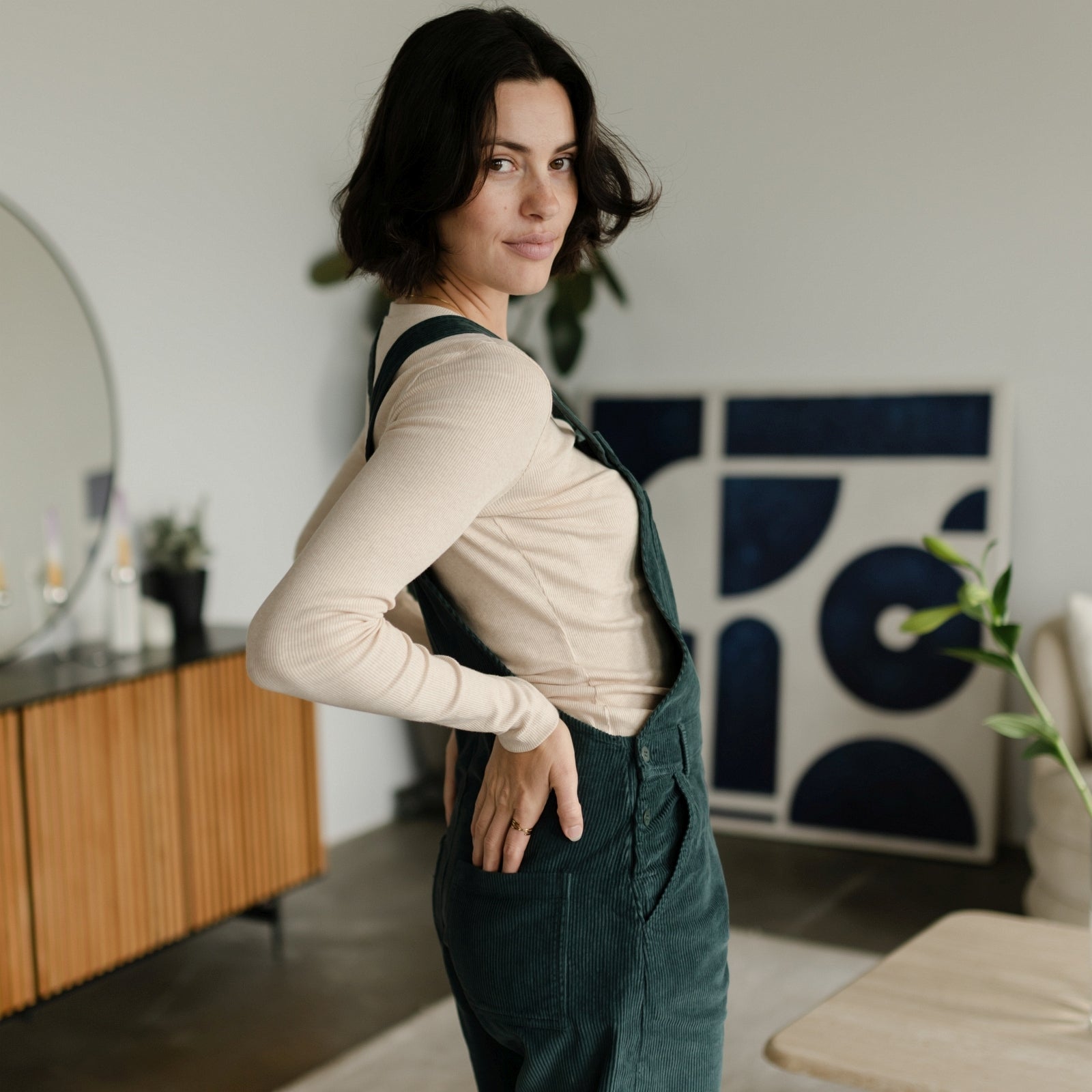 Unsere Cord Latzhose Liv ist in Zusammenarbeit mit Geraldine von @geraldineschuele entstanden – inspiriert vom echten Leben auf dem Land. Der weiche Cord aus 100 % Bio-Baumwolle, ein bequemer Regular Fit und verstellbare Träger machen sie zum idealen Begleiter für Alltag und Natur. Dezente Steinnuss-Knöpfe runden das schlichte Design ab. Ob im Garten, auf dem Hof oder unterwegs – Liv passt sich an.