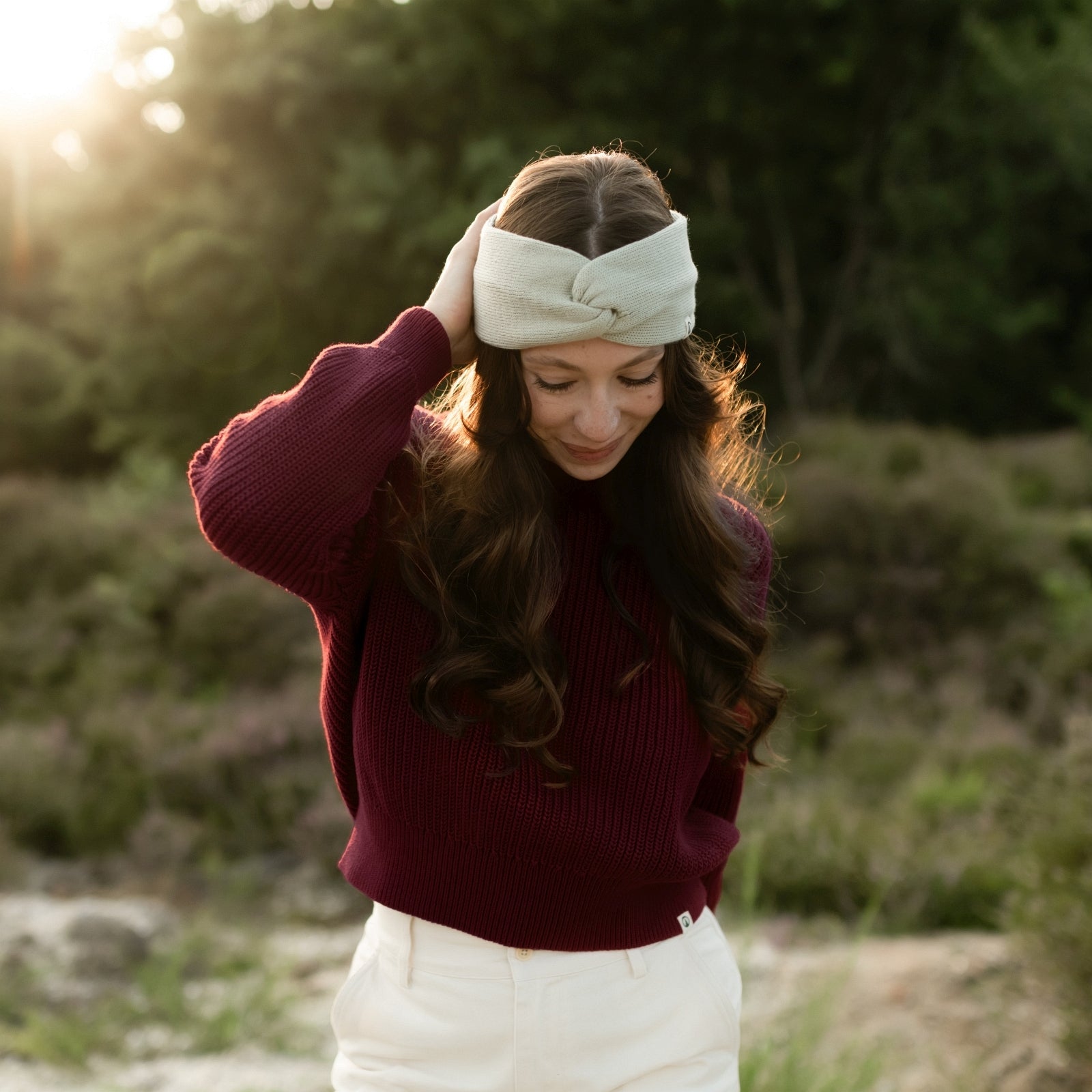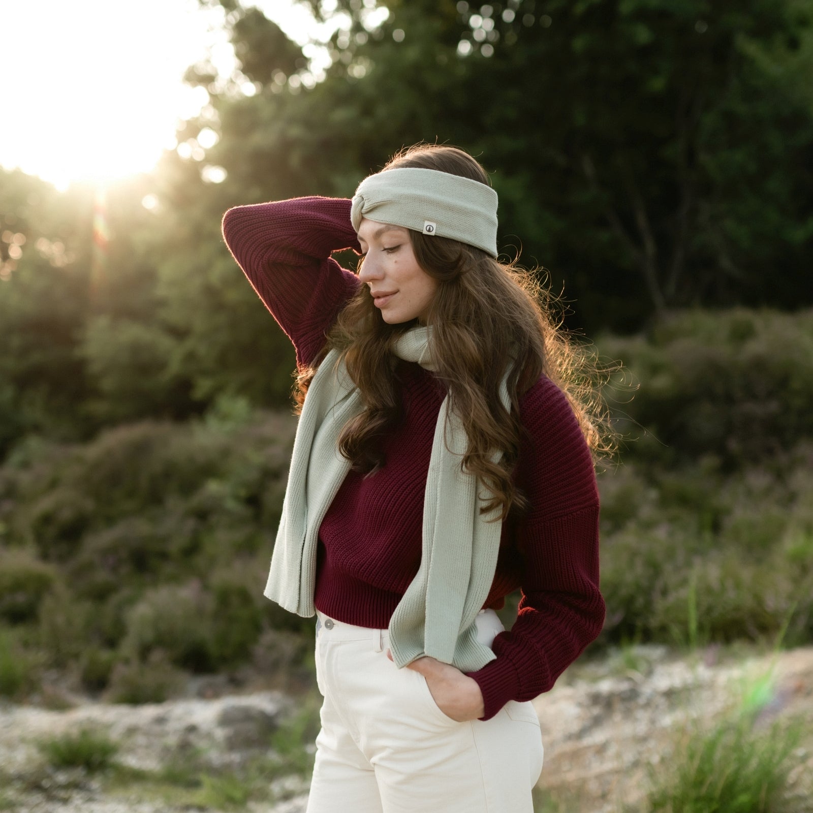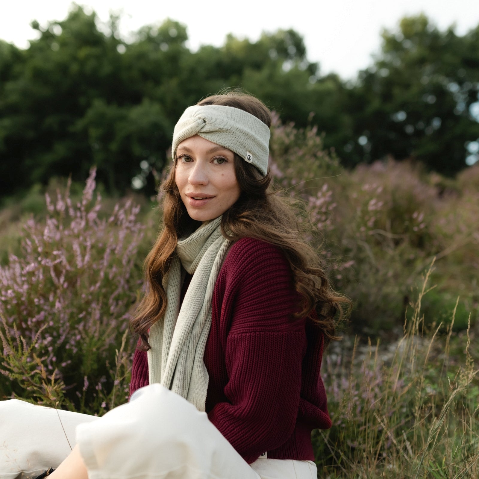 Das nachhaltige Stirnband LENE besteht aus 50 % Bio-Baumwolle und 50 % recycelter Baumwolle. Hergestellt in Castelões, Portugal, vereint es faire Produktion mit ressourcenschonenden Materialien. Das weiche, wärmende Material sorgt für ein angenehmes Tragegefühl und gleicht die Temperatur optimal aus – ideal für kühle Tage und bewusste Outfits.