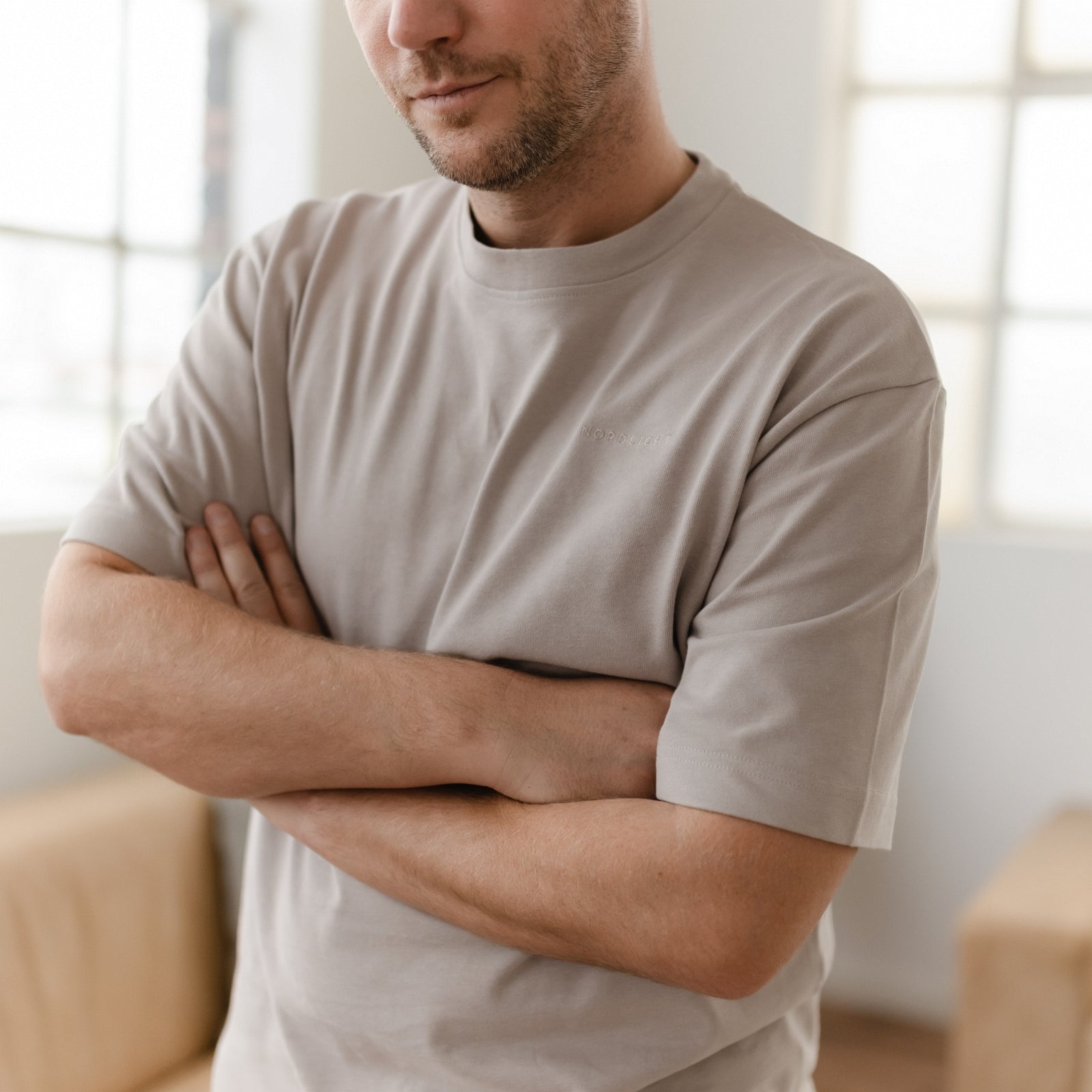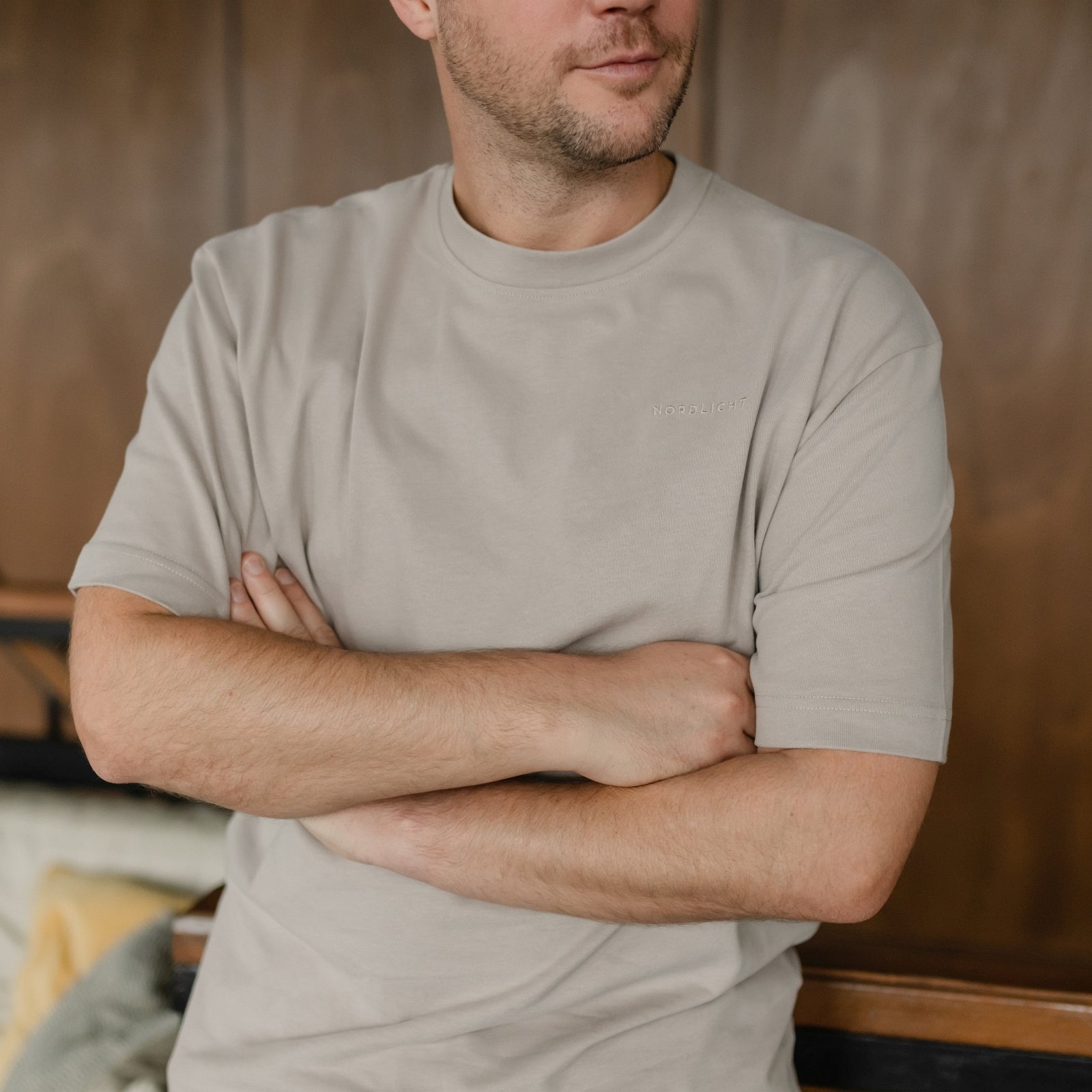Unser Nordlicht Herren Heavy T-Shirt Jarne vereint markanten Style mit nachhaltigen Materialien und außergewöhnlicher Langlebigkeit. Hergestellt aus 50 % Bio-Baumwolle und 50 % recycelter Baumwolle, bietet der schwere Jersey-Stoff nicht nur Stabilität, sondern auch eine edle, weiche Haptik. Der kastige, lockere Schnitt sorgt für einen modernen, lässigen Look, während die Ton-in-Ton Nordlicht-Stickerei auf der Brust für ein dezentes, cleanes Detail steht. Jarne ist das perfekte Statement-Piece für alle, die Wert auf hochwertige Basics legen. Das T-Shirt fällt Oversized aus - für einen normalen Look empfehlen wir eine Größe kleiner als bei den anderen T-Shirts.