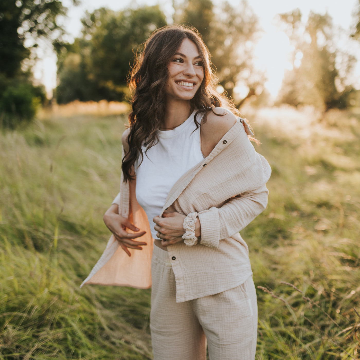 Stelle dein Musselin-Set individuell zusammen – mit weichen Oversize-Blusen, Shirts und Tops kombiniert mit fließenden Palazzo-Hosen, luftigen Shorts oder Röcken. Die harmonisch abgestimmten Farben und vielseitigen Schnitte bieten dir endlose Mix-&-Match-Möglichkeiten für einen entspannten, stilvollen Look.