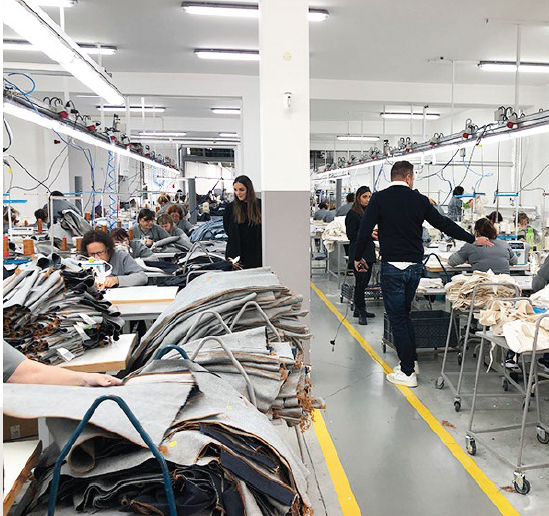 Das Team vor Ort arbeitet mit viel Fachwissen, modernster Technik und einem klaren Anspruch an Qualität. Der gesamte Produktionsprozess – von Schnitt über Näherei, Färbung, Waschung bis zur Endkontrolle – findet im eigenen Haus statt. Pro Tag können bis zu 1.000 Kleidungsstücke gefertigt werden.