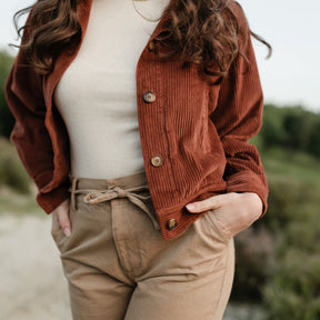 Fair: Handgefertigt in Barcelos, Portugal. Die Cordjacke ist GOTS zertifiziert und damit garantiert unter fairen Bedingungen hergestellt.
