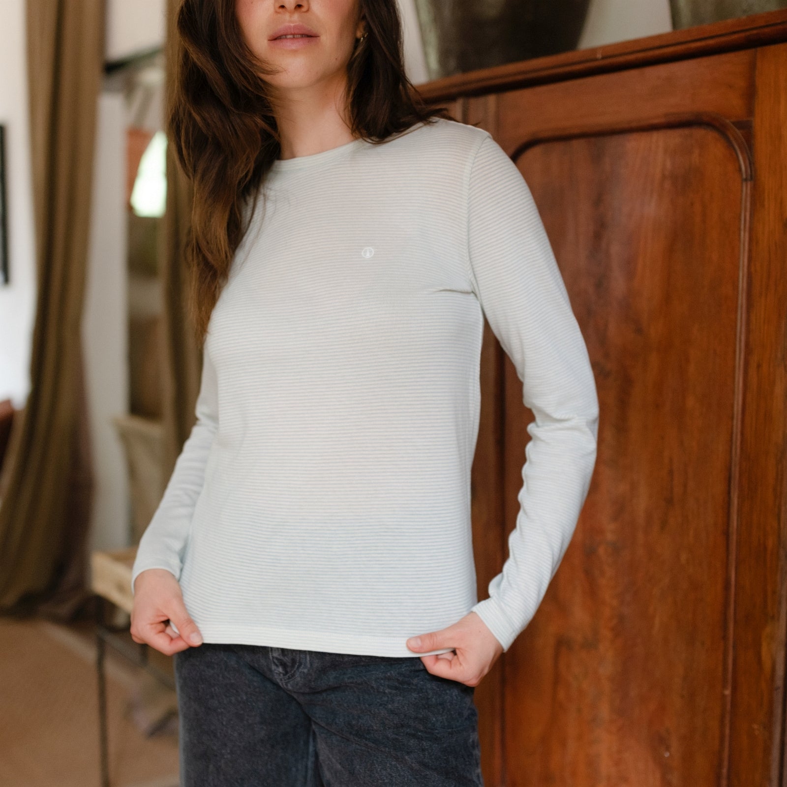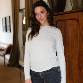 Das gestreifte Nordlicht Langarmshirt Alva in Hellblau verbindet zeitlose Streifen mit natürlichem Komfort. Gefertigt aus 100% Bio-Baumwolle liegt das weiche Material angenehm auf der Haut und sorgt für ein rundum gutes Tragegefühl – Tag für Tag. Die langen Ärmel und der bequeme Schnitt machen Alva zu einem vielseitigen Essential für jede Saison. Das runde Nordlicht Logo auf der Brust setzt einen dezenten Akzent und unterstreicht den klaren, reduzierten Look.