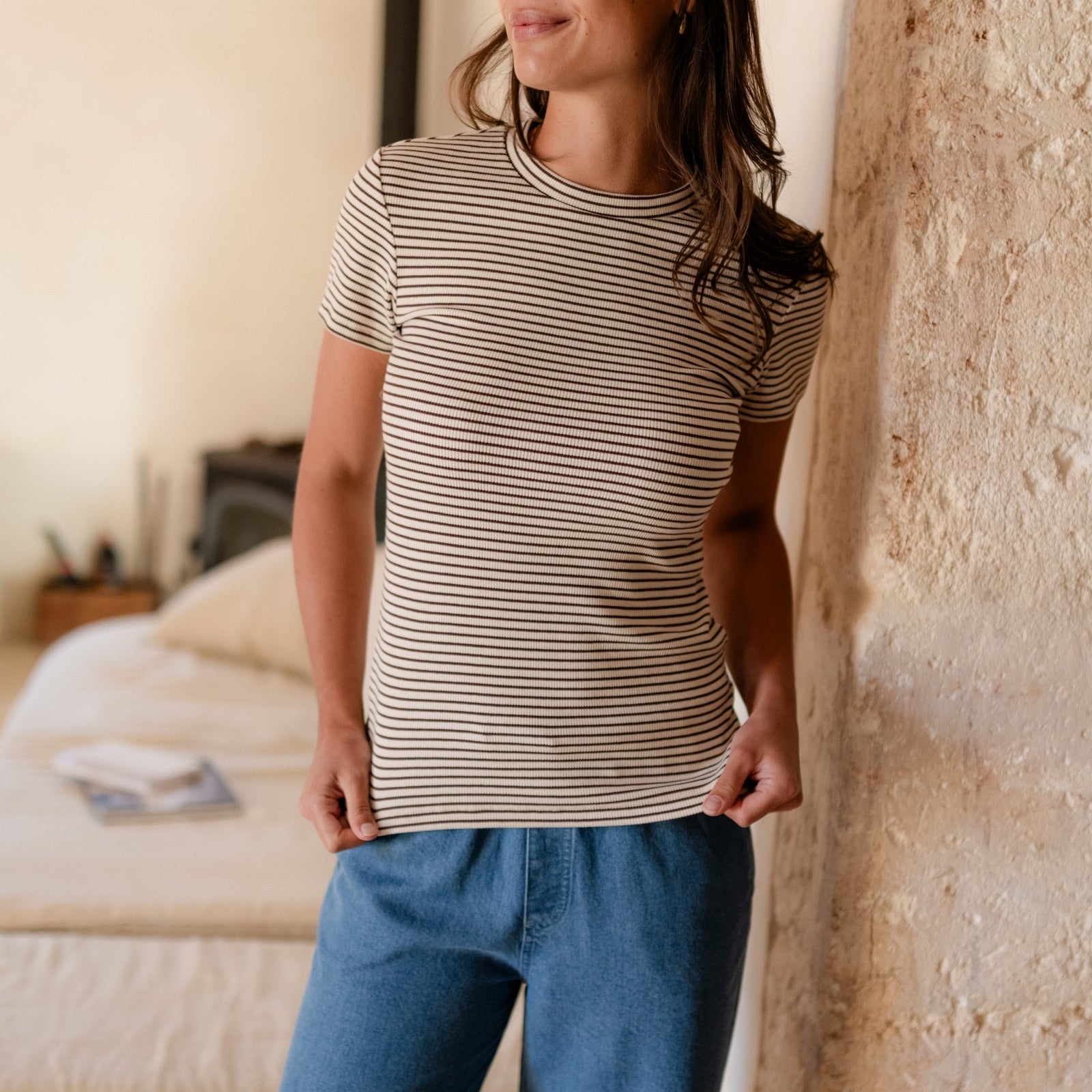 Gestreiftes Ripp T-Shirt Elvie