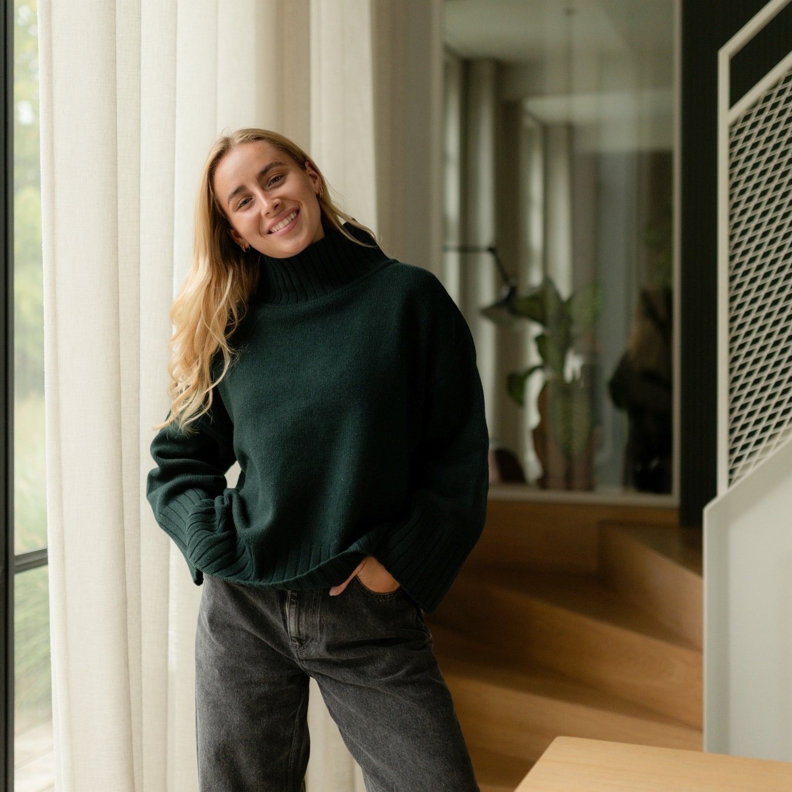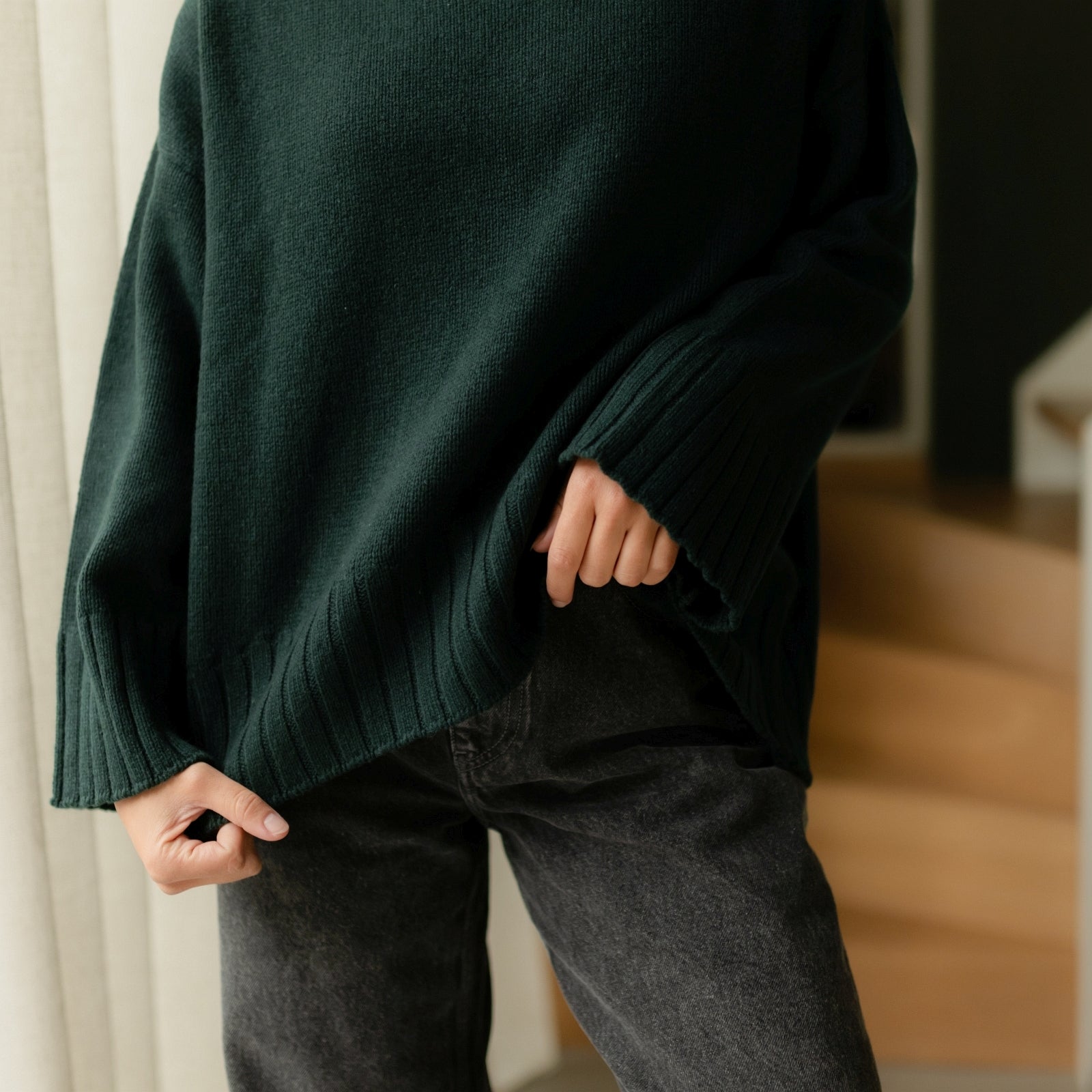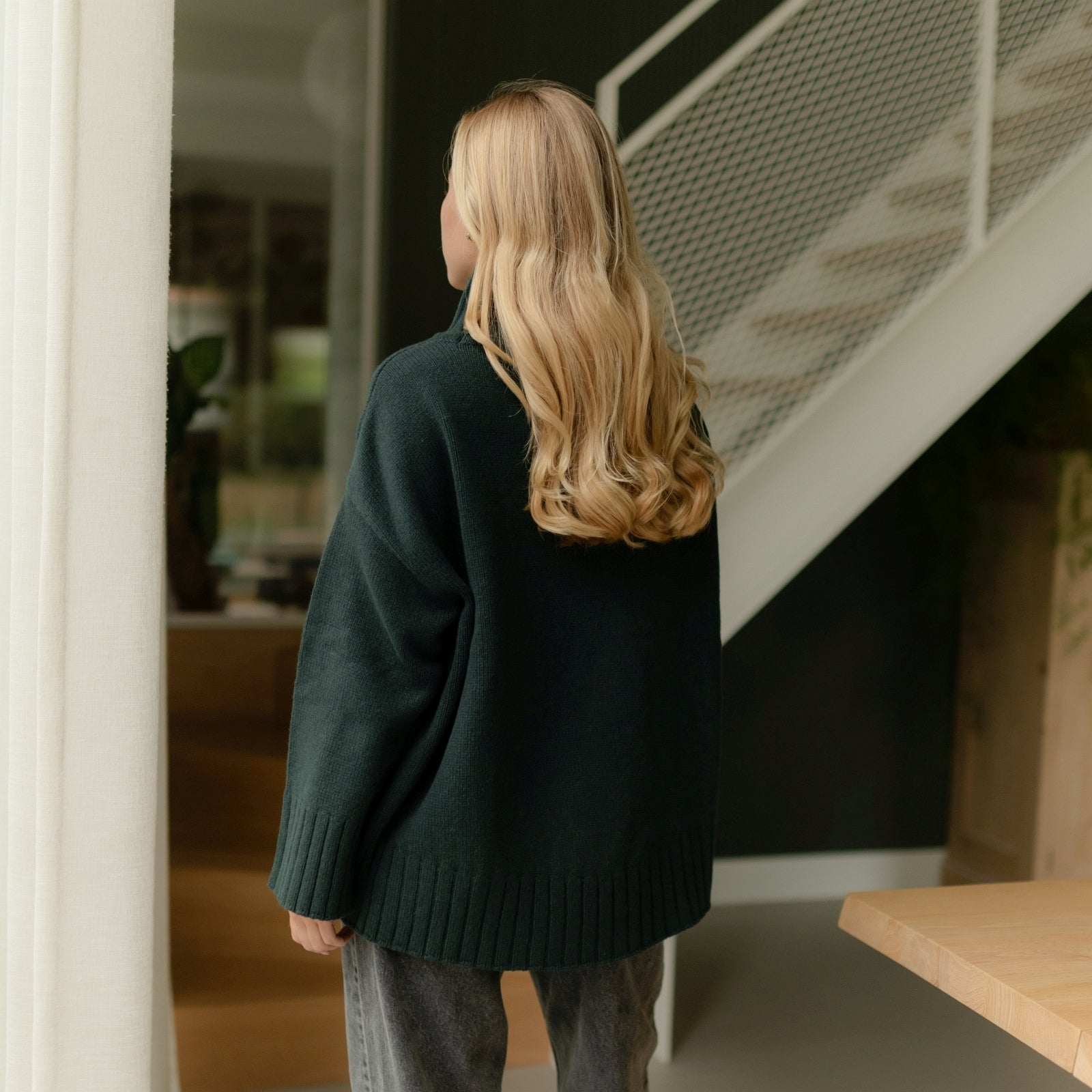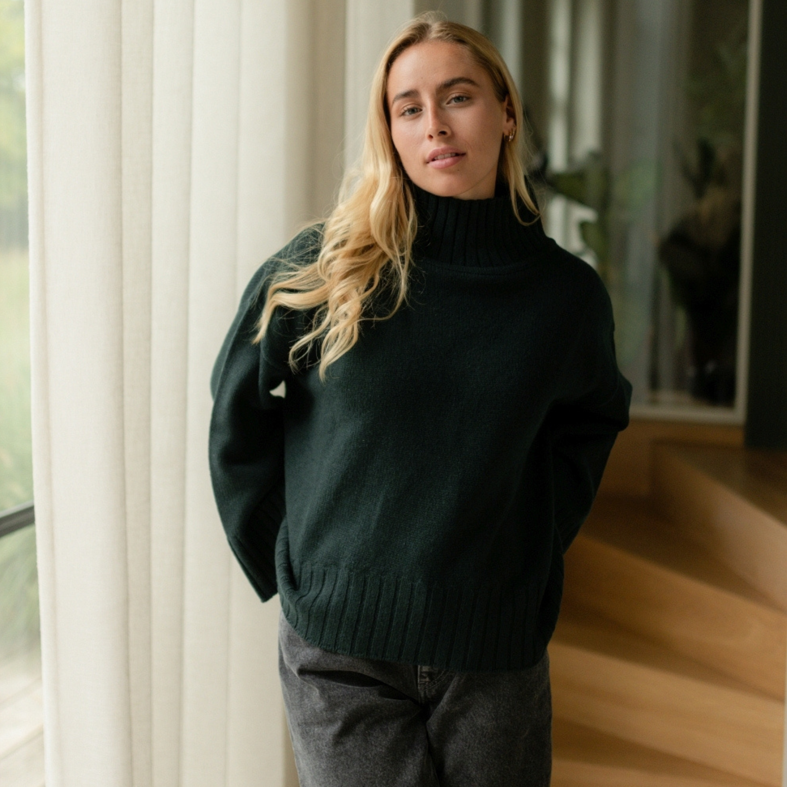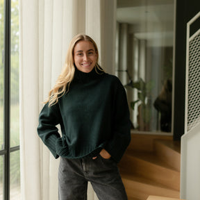 Der Wollpullover mit Rollkragen Mina vereint wärmenden Komfort mit bewusstem Design. Gefertigt aus 100% recycelter Wolle, bietet der weiche Strick natürliche Wärme und eine rustikale Struktur – ideal für kalte Tage. Mit seinem hohen Rollkragen, der lockeren Passform und dem zeitlosen Schnitt ist Mina ein vielseitiger Begleiter für Alltag und Übergangszeit – pur getragen oder als wärmende Schicht im Layering.