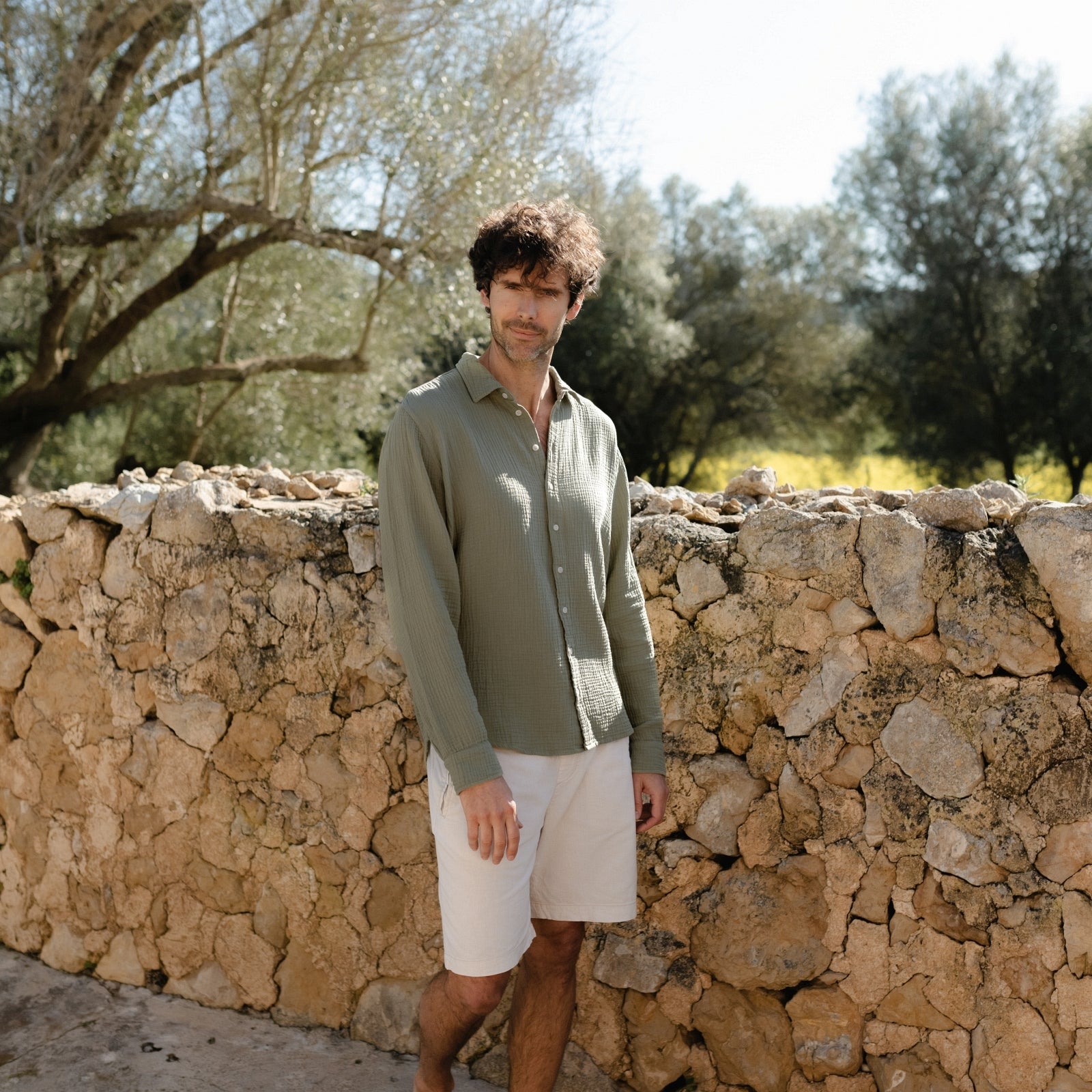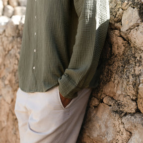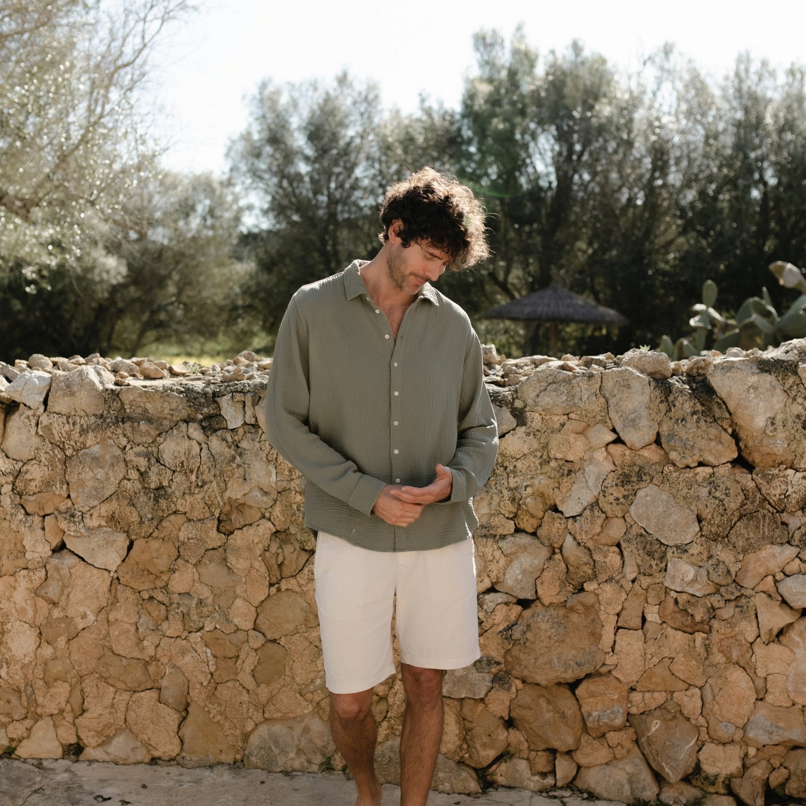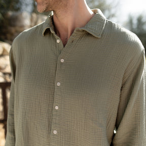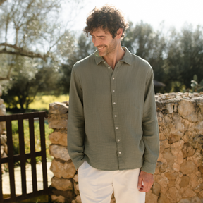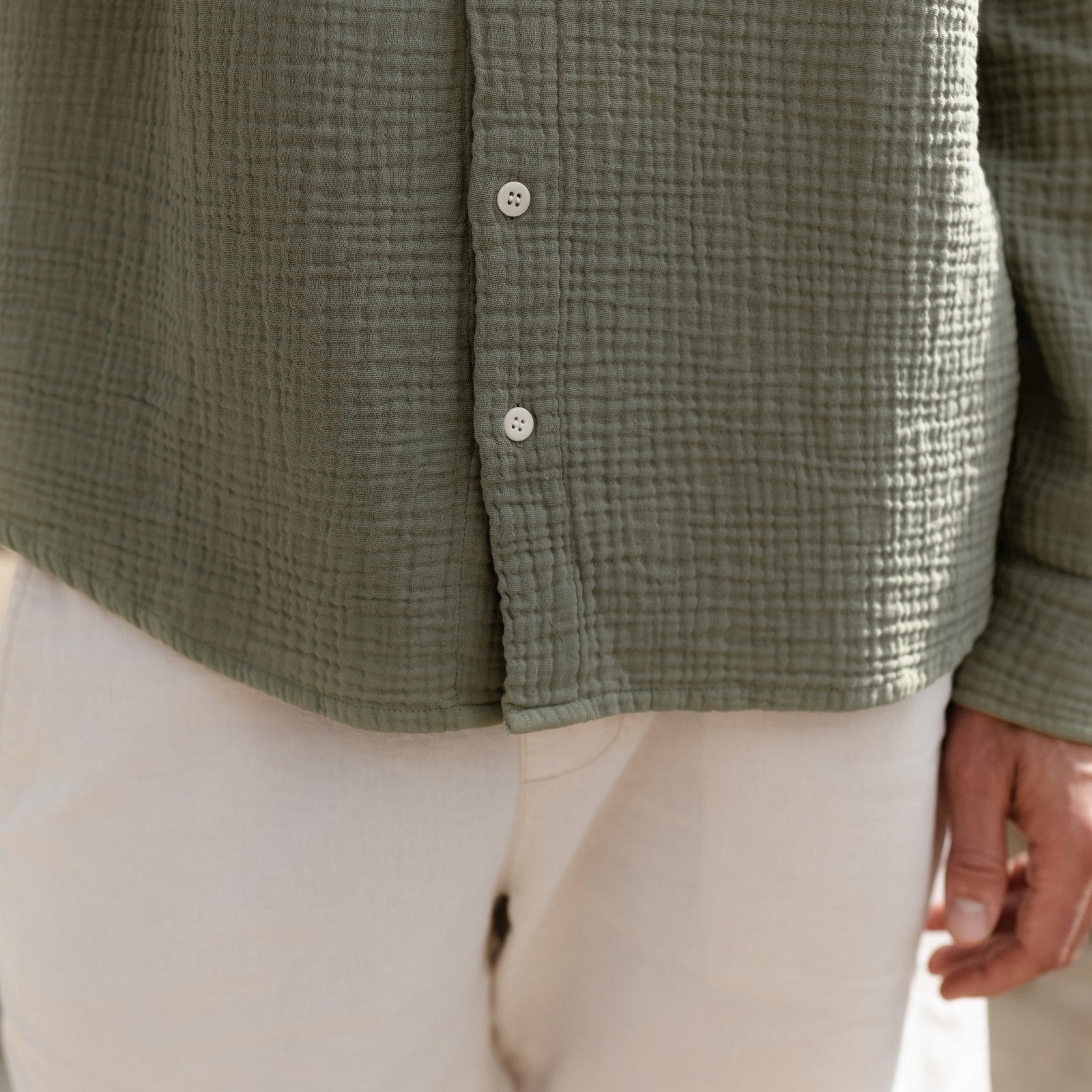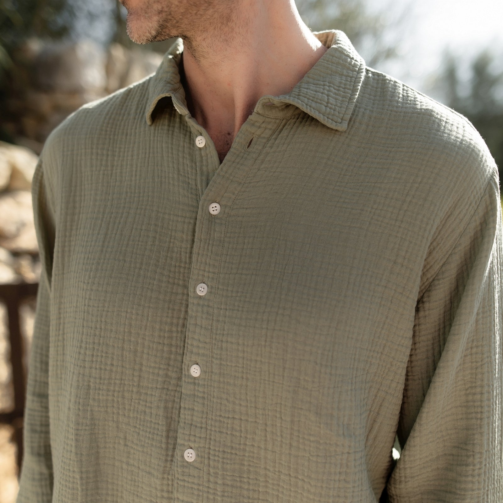 Musselin aus Bio-BaumwolleUnser Nordlicht Herren Musselin Hemd Lias vereint klassischen Stil mit moderner Lässigkeit und nachhaltiger Qualität. Gefertigt aus 100% Bio-Baumwolle in weicher Musselin-Struktur, bietet es ein leichtes, luftiges Tragegefühl und ist damit der ideale Begleiter für jede Jahreszeit. Der lockere Schnitt sorgt für eine entspannte Passform, während die Corozo Knöpfe der Knopfleiste einen edlen Akzent setzen. Der klassische Kragen rundet das minimalistische Design ab und verleiht dem Hemd einen Hauch von Eleganz – perfekt für Business-Casual-Looks oder entspannte Freizeit-Outfits.