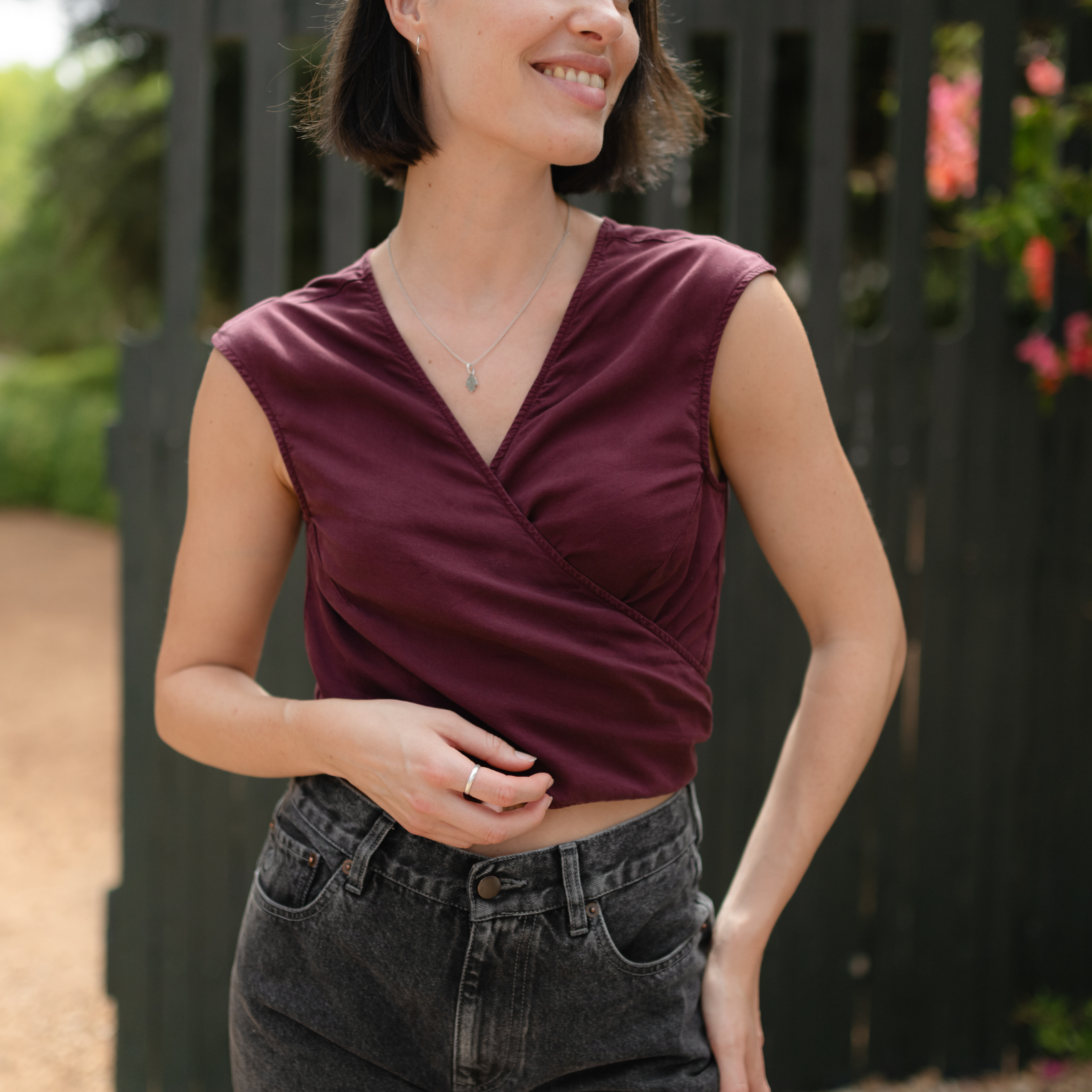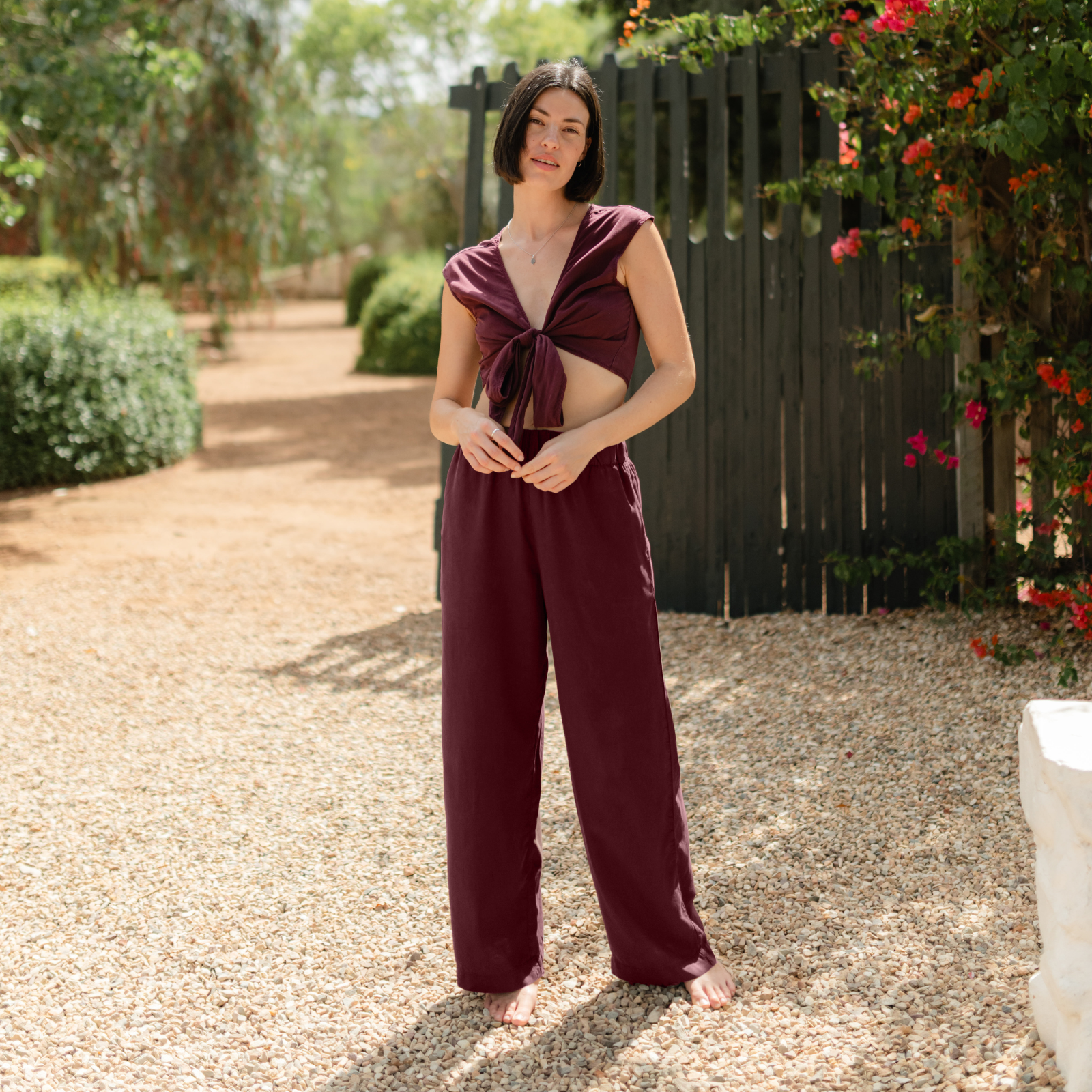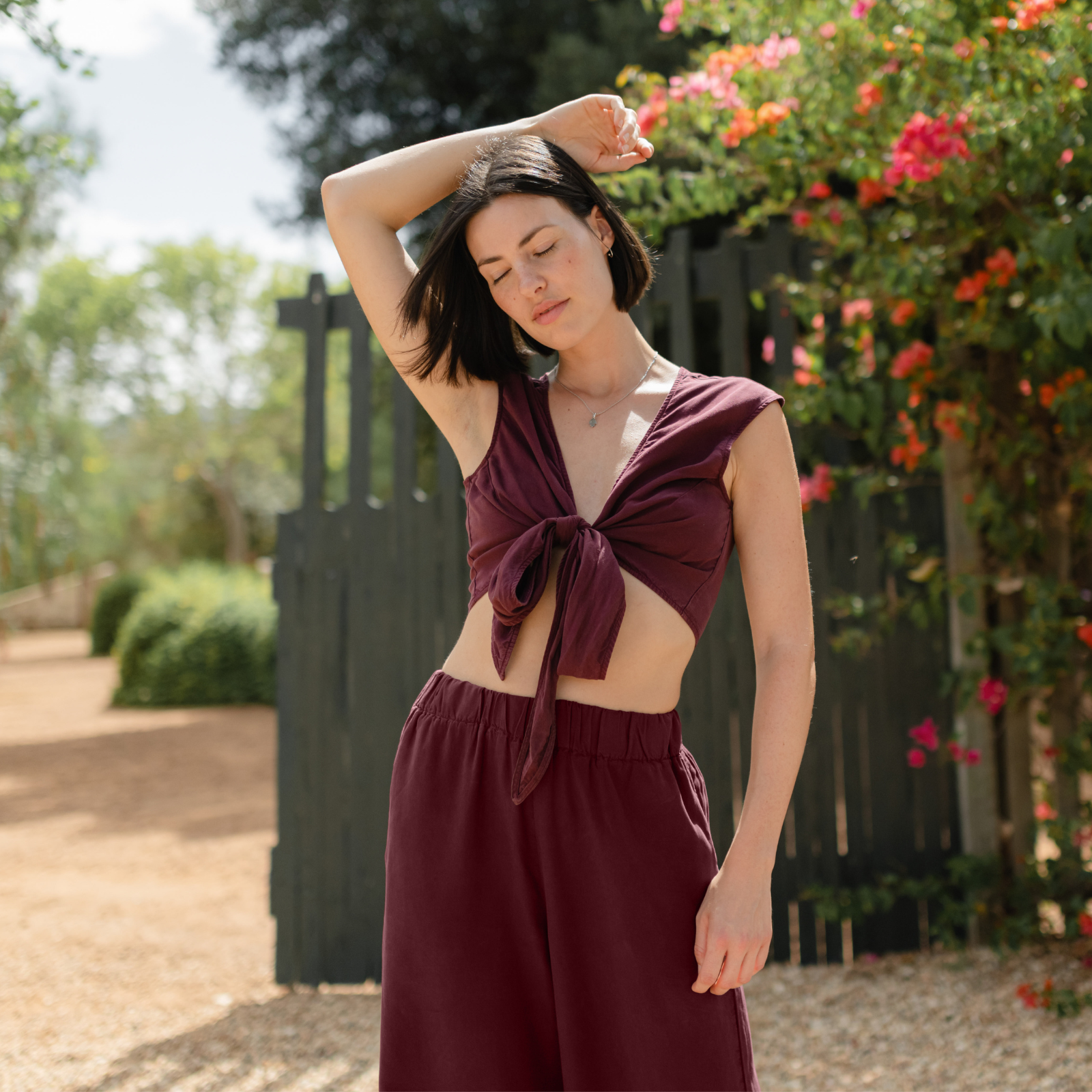 Umweltfreundliche CellulosefaserDas Nordlicht Knoten Top Nele ist ein vielseitiges Lieblingsstück für warme Tage. Gefertigt aus hochwertigem Tencel überzeugt es mit einer glatten, weich fließenden Oberfläche und einem angenehmen, kühlenden Tragegefühl. Der Cropped Fit, die leicht angeschnittenen Ärmel und das Knotendetail machen Nele zu einem modernen Allrounder – tragbar zu High-Waist-Hose, Rock oder Shorts. Ein unkompliziertes Top, das Stil und Nachhaltigkeit verbindet.
