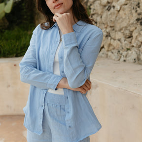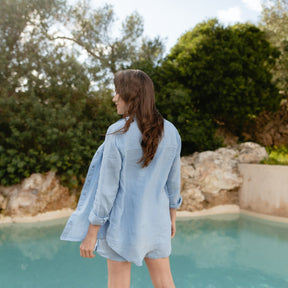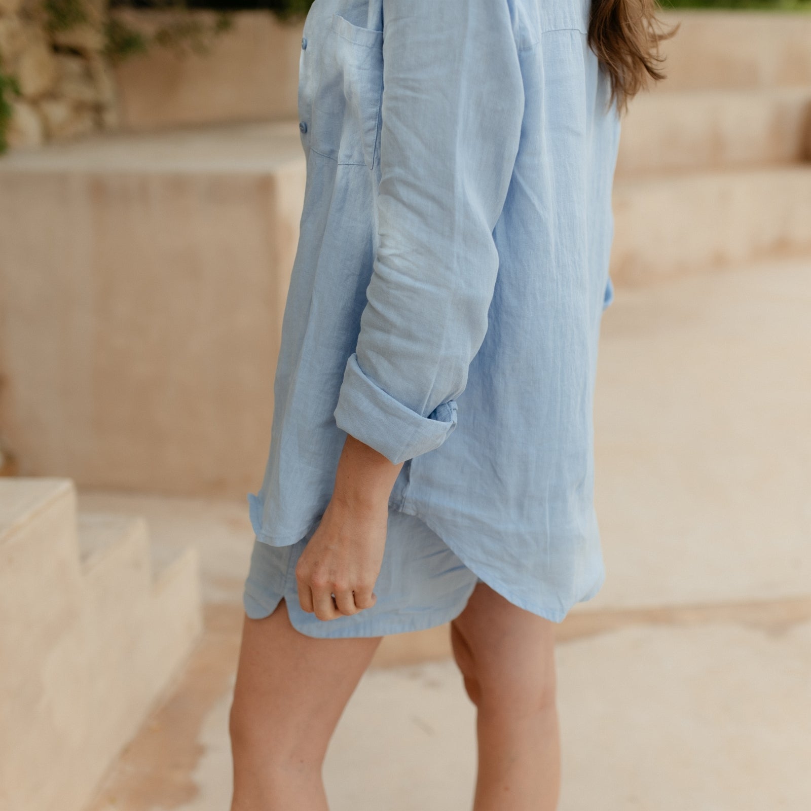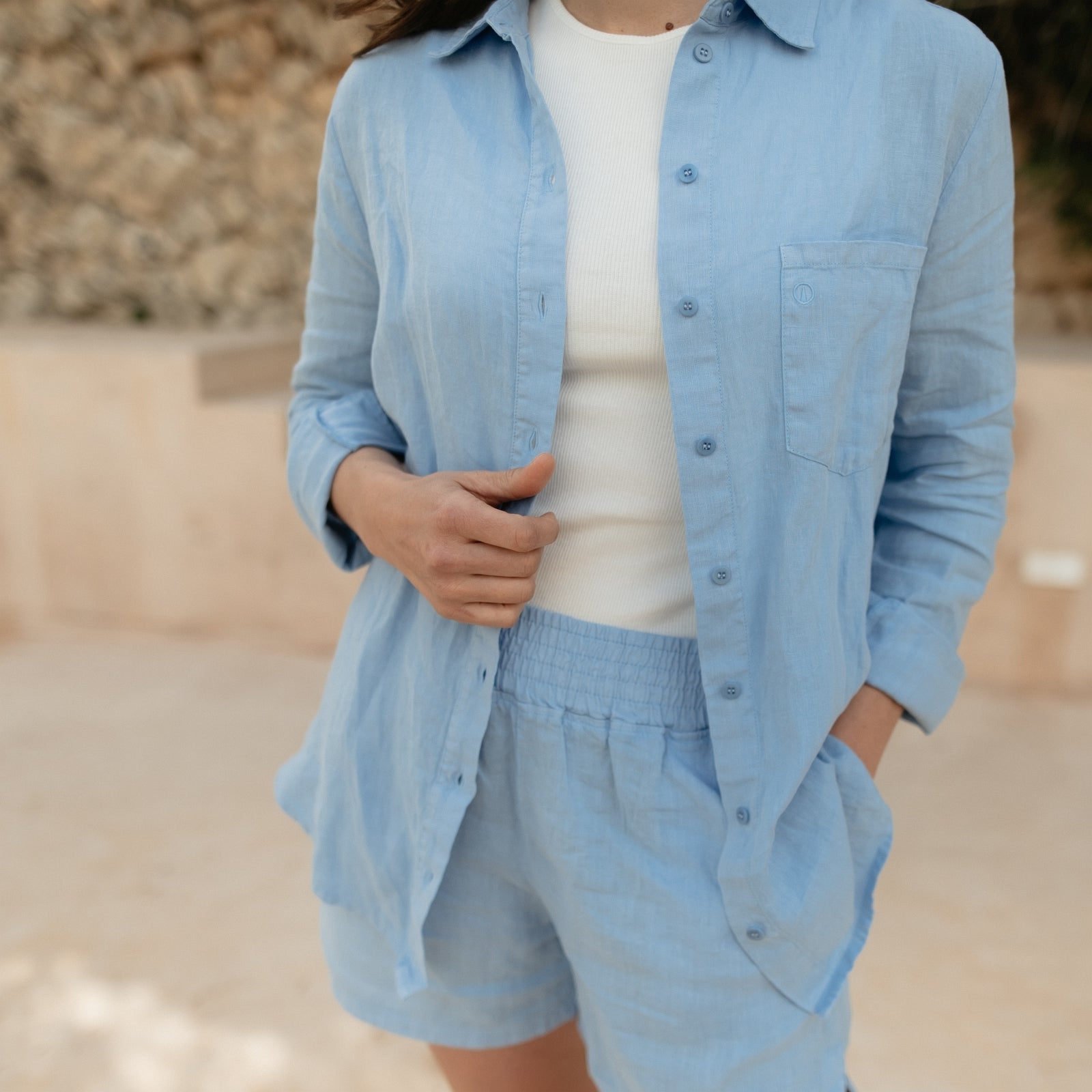 Die Nordlicht Oversize Leinen Bluse Cilia ist locker geschnitten und bietet einen zeitlosen Stil, der perfekt zu verschiedenen Outfits passt. Hergestellt aus hochwertigem 100% Leinen, bietet sie natürliche Temperaturregulierung und Atmungsaktivität für optimalen Komfort. Fair produziert in Barcelos, Portugal, ist sie ein Must-have für jede Garderobe.