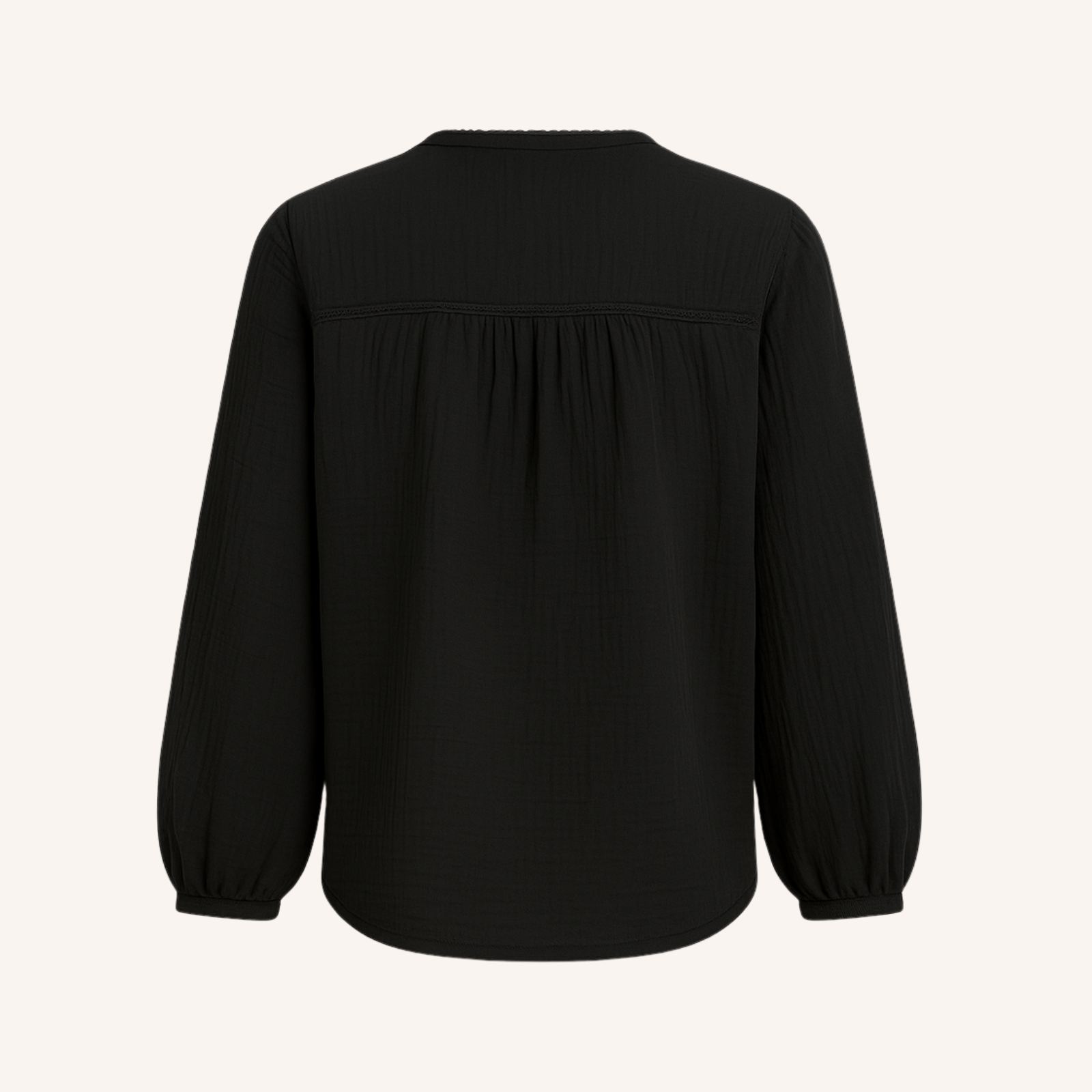 Musselin aus Bio-BaumwolleEuren Sommer-Bestseller jetzt auch für Herbst/Winter: Unsere Nordlicht Musselin Bluse Emi Langarm vereint feminine Leichtigkeit mit zeitgemäßem Design. Aus 100% Bio-Baumwolle gefertigt, fühlt sich der weiche Musselin angenehm auf der Haut an und wirkt temperaturausgleichend. Die langen Ärmel verleihen der Bluse eine elegante Note, während die schlichte Knopfleiste aus edlen Corozo-Knöpfen den modernen Look unterstreicht.