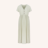 Musselin aus Bio-BaumwolleEuer Bestseller jetzt in Maxi-Länge: ALMA Lang in Salbei ist leicht, luftig und stilvoll. Der weiche Musselin-Stoff aus 100 % Bio-Baumwolle fühlt sich angenehm an und fällt fließend – ganz ohne Faltenbildung. Seitliche Schlitze bieten zusätzliche Bewegungsfreiheit, während der feminine V-Ausschnitt mit nachhaltigen Knöpfen ein dezentes Highlight setzt. Perfekt für einen entspannten, eleganten Look.