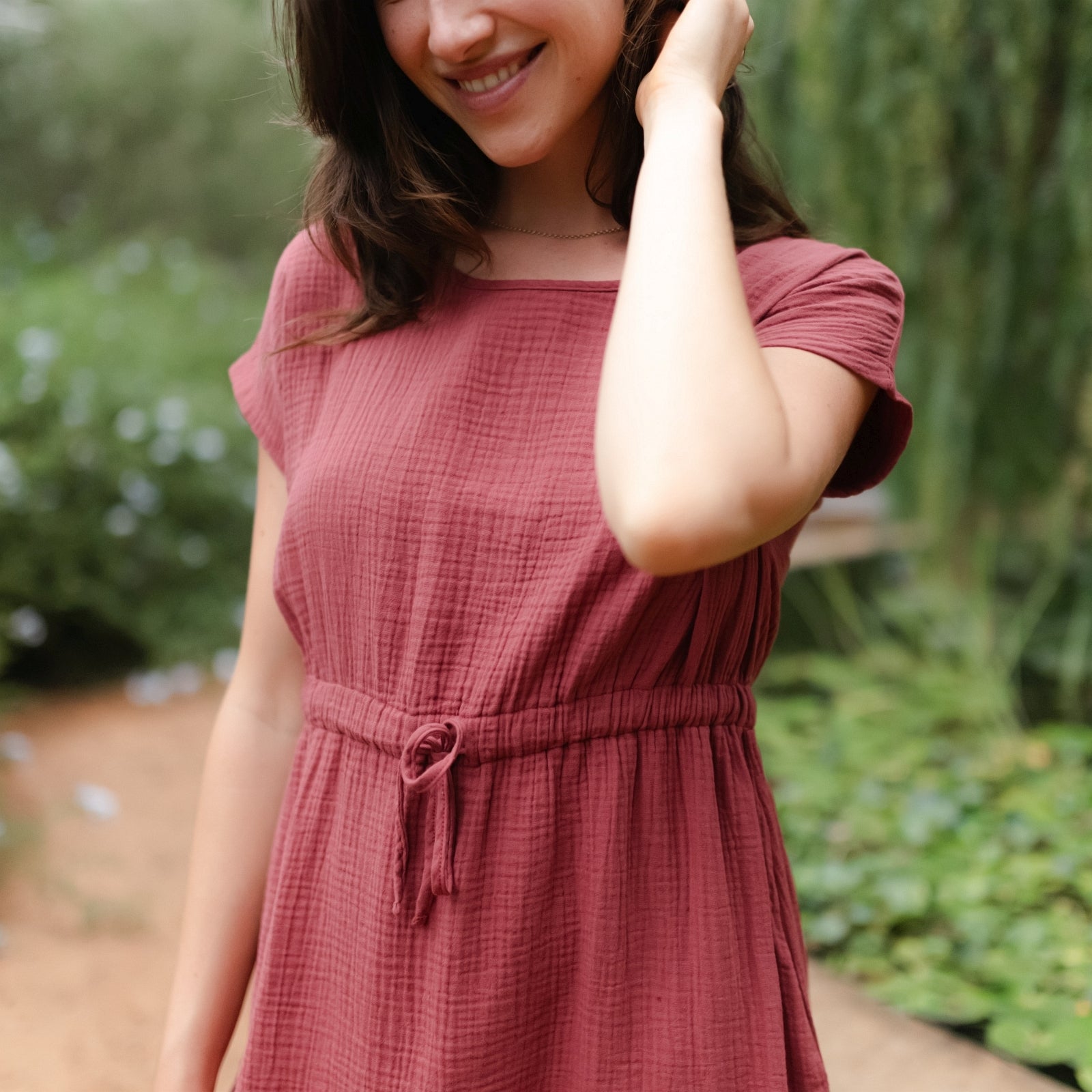 Das Musselin Kleid Eleni ist in den Größen XS (34) bis XL (42) erhältlich.