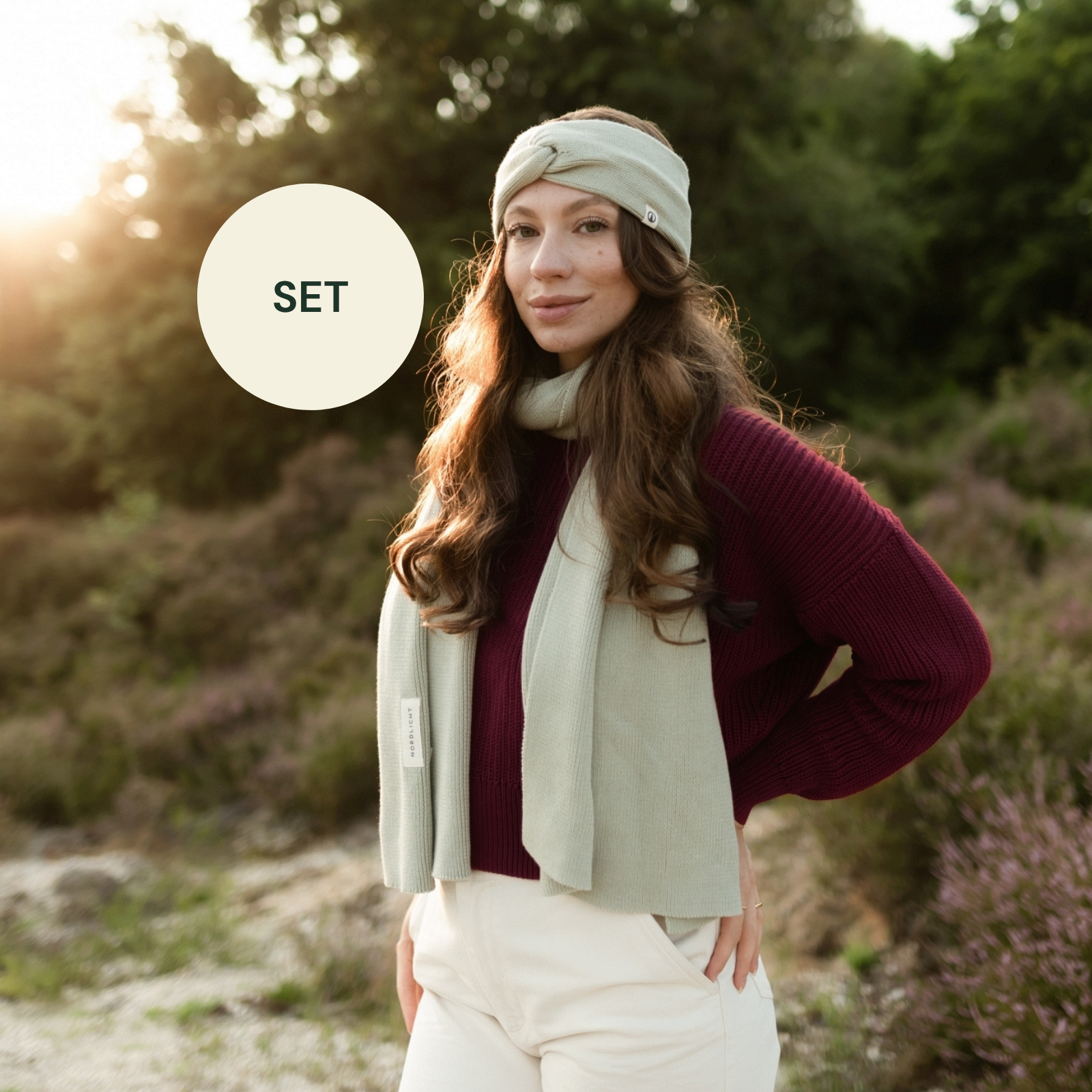 Der nachhaltige Schal MEJA & das Stirnband LENE bestehen aus 50% Bio-Baumwolle und 50% recycelter Baumwolle. Hergestellt in Castelões, Portugal, verbinden sie faire Produktion mit hochwertigen Materialien. Der Stoff ist kuschelig weich, hält angenehm warm und sorgt zugleich für ein ausgeglichenes Trageklima – zeitlose Accessoires für bewusste Garderoben.