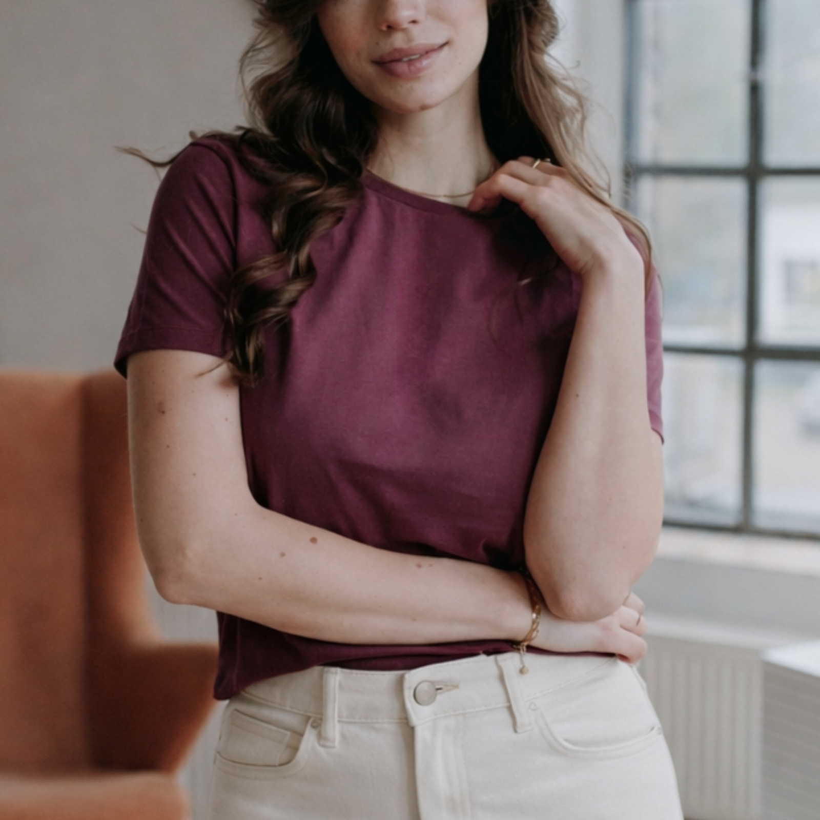 aus Bio- & recycelter BaumwolleDas T-Shirt ALVA verbindet stilbewusstes Design mit umweltfreundlichen Materialien. Gefertigt aus 50% Bio-Baumwolle und 50% recycelter Baumwolle, bietet es eine hohe Grammatur und einen angenehm weichen Griff – perfekt für einen hochwertigen Look und langlebigen Tragekomfort. Mit seinem körpernahen, aber dennoch luftigen Schnitt sorgt das Shirt für eine moderne, entspannte Passform.