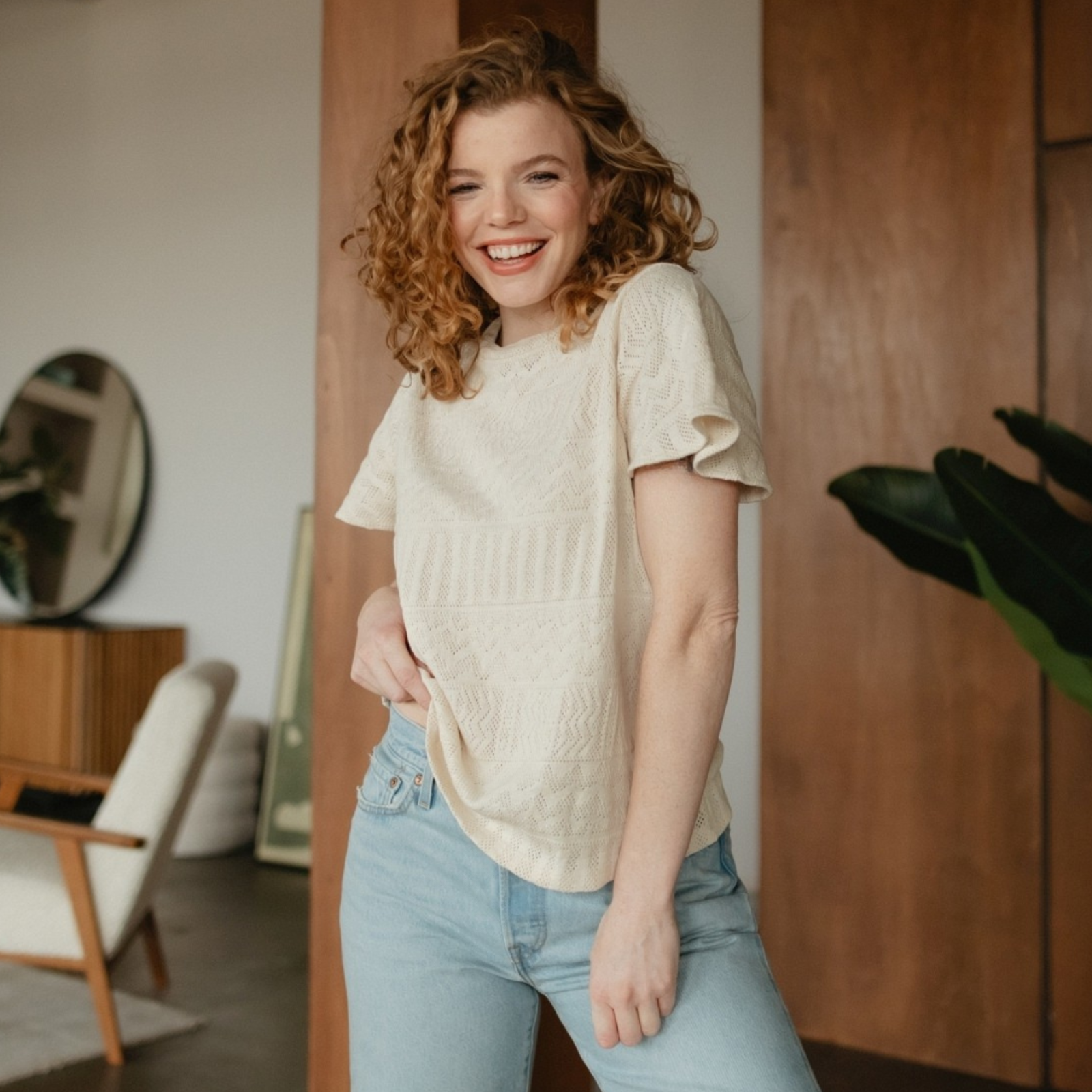 Unser Nordlicht T-Shirt Elma bringt frischen Wind in deine Garderobe – verspielt, modern und nachhaltig. Gefertigt aus 100% recycelter Baumwolle in hochwertigem Jersey Jacquard, vereint es besonderen Tragekomfort mit einzigartiger Optik. Die kurzen, weiter geschnittenen Ärmel verleihen dem Shirt eine feminine Leichtigkeit, während das Jacquard-Muster einen dezenten Akzent setzt. Bequem und stylisch zugleich – perfekt für entspannte Tage und vielseitige Outfits.