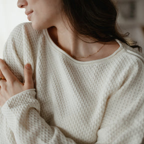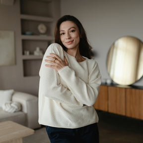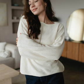Gemütlich, aber mit Stil – der VIOLA Sweater kombiniert Wohlfühlfaktor mit modernem Design. Die strukturierte Waffel-Optik macht ihn zum Hingucker, während die entspannte Passform für maximale Bewegungsfreiheit sorgt. Ein kuscheliges Essential, das dich das ganze Jahr begleitet – ob entspannt zu Hause oder gestylt unterwegs.