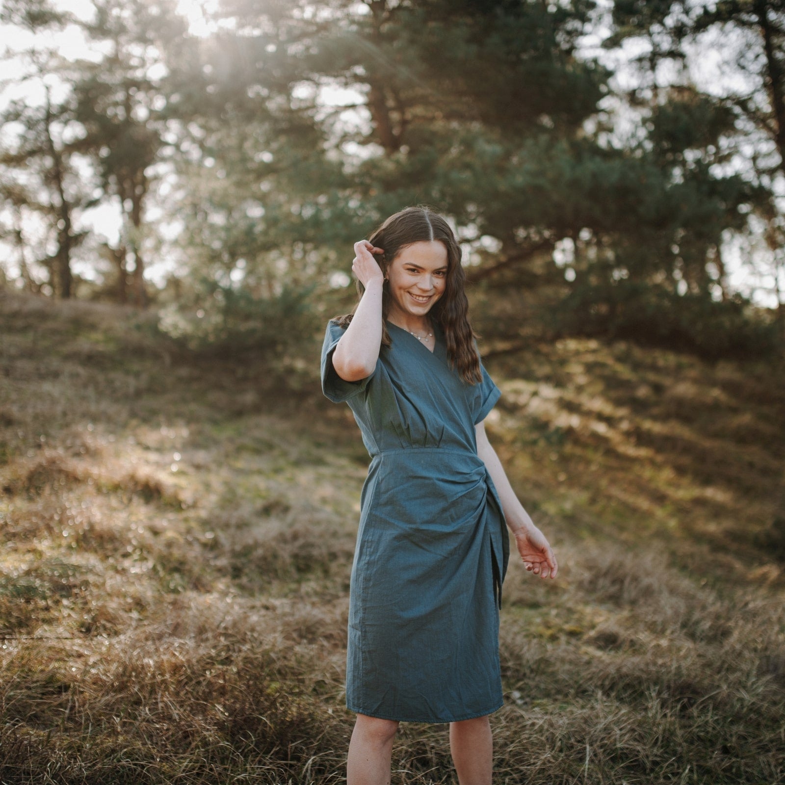 Strukturierter Stoff aus Bio-Baumwolle- Nachhaltiges Wickelkleid aus 100% strukturierter Bio-Baumwolle
